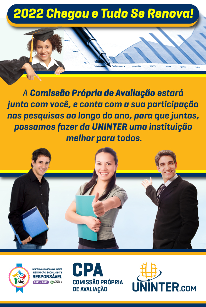 A Comissão Própria de Avaliação estará junto com você, e conta com a sua participação nas pesquisas ao longo do ano, para que juntos, possamos fazer da UNINTER uma instituição melhor para todos.