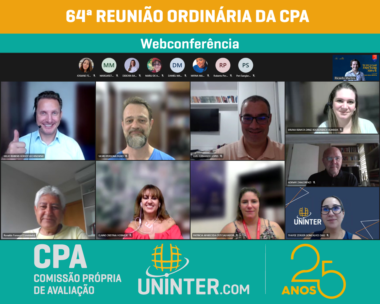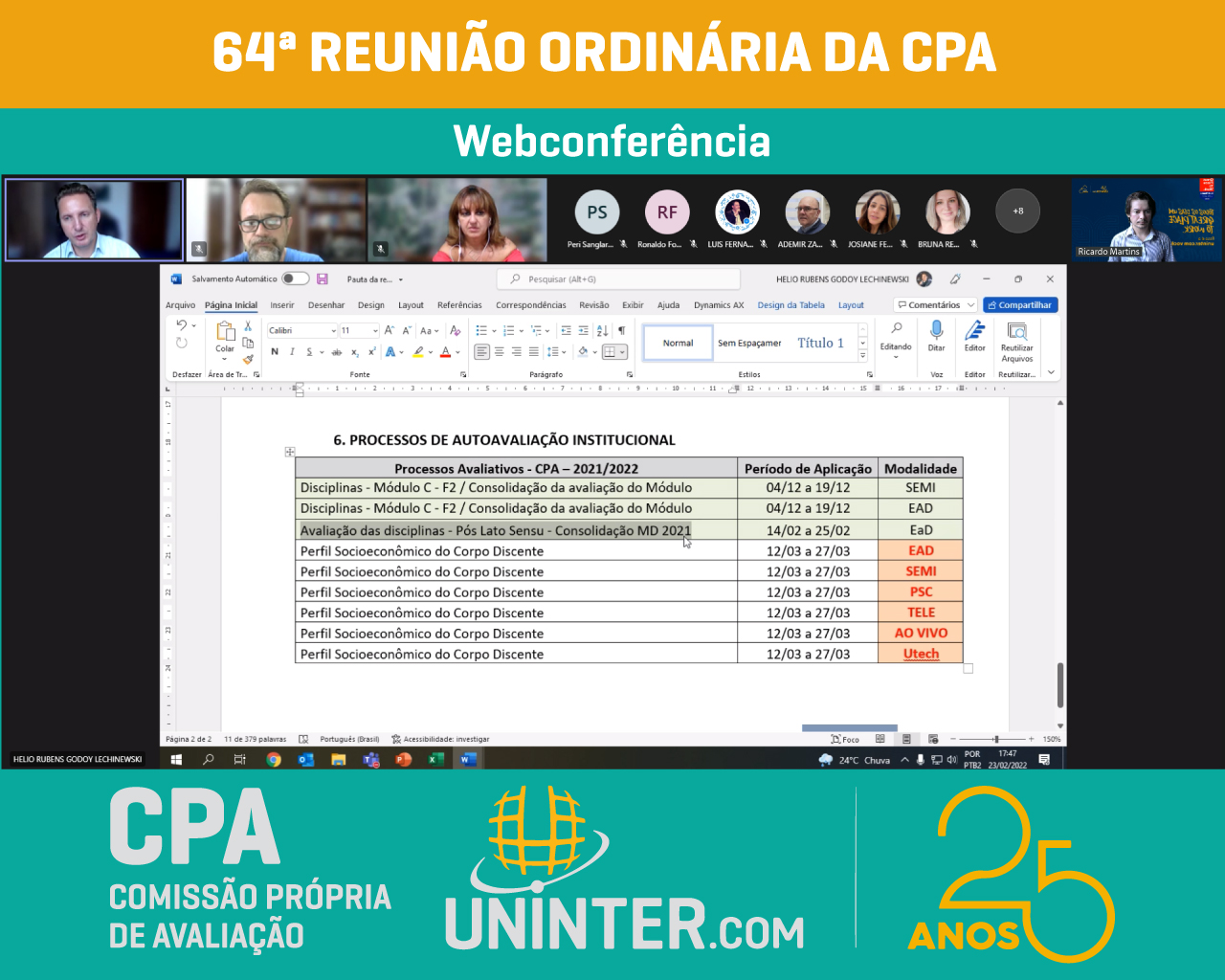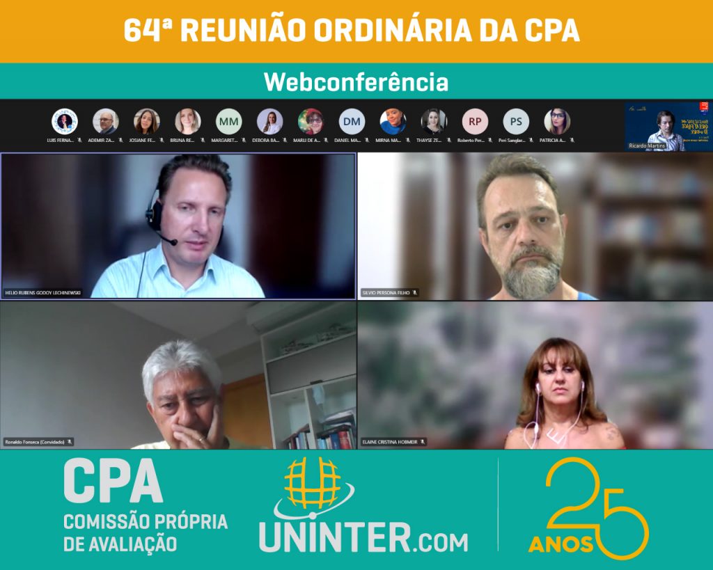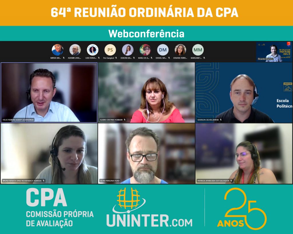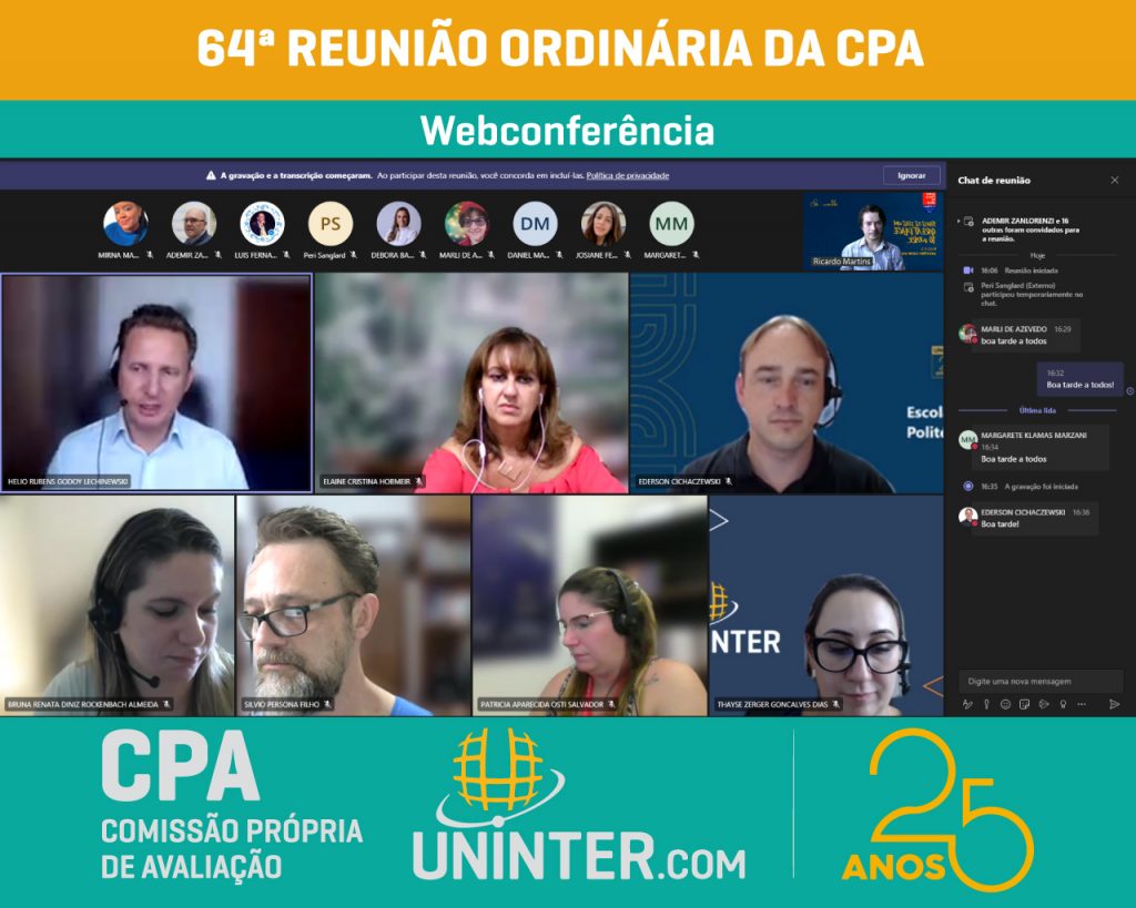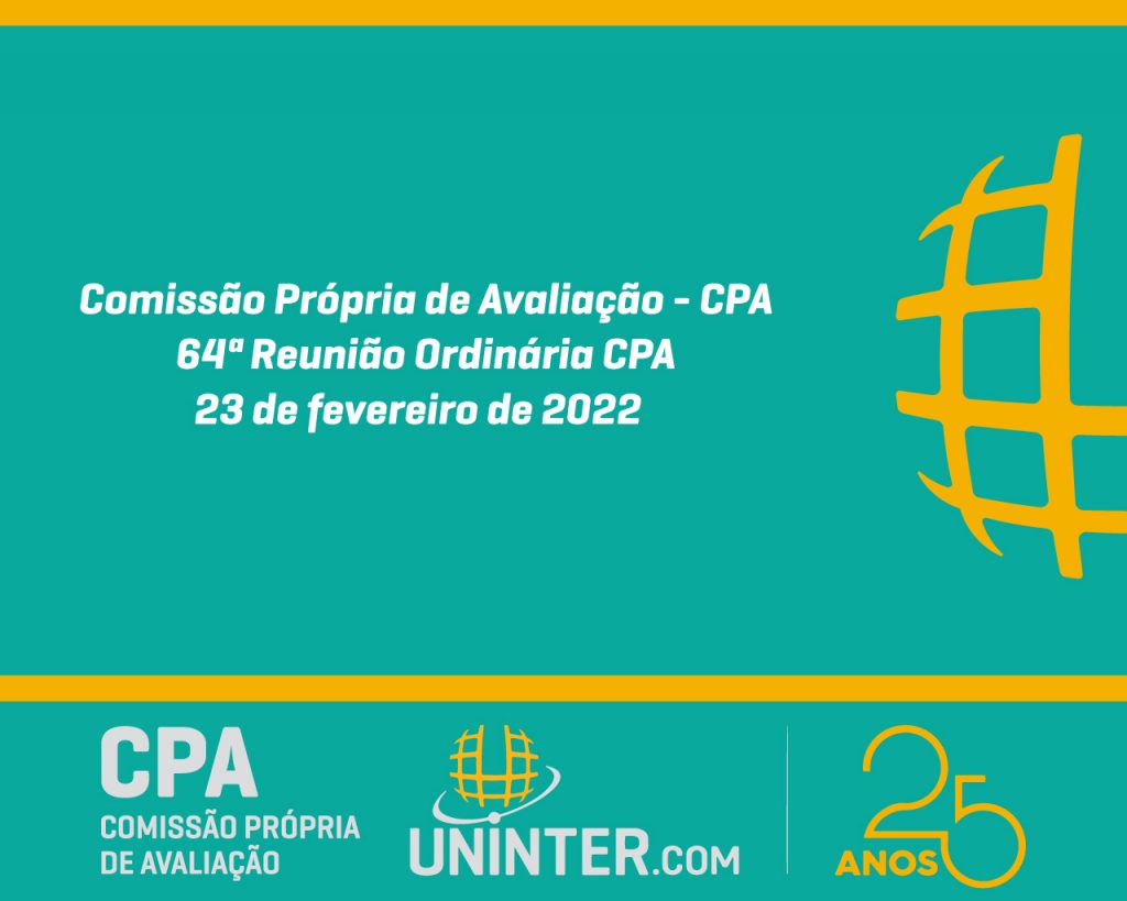 📊No dia 23 de fevereiro 2022 realizamos a 64ª Reunião Ordinária da CPA da UNINTER, primeira do ano de 2022. Com os representantes reunidos remotamente participando por meio de webconferência na plataforma Teams.