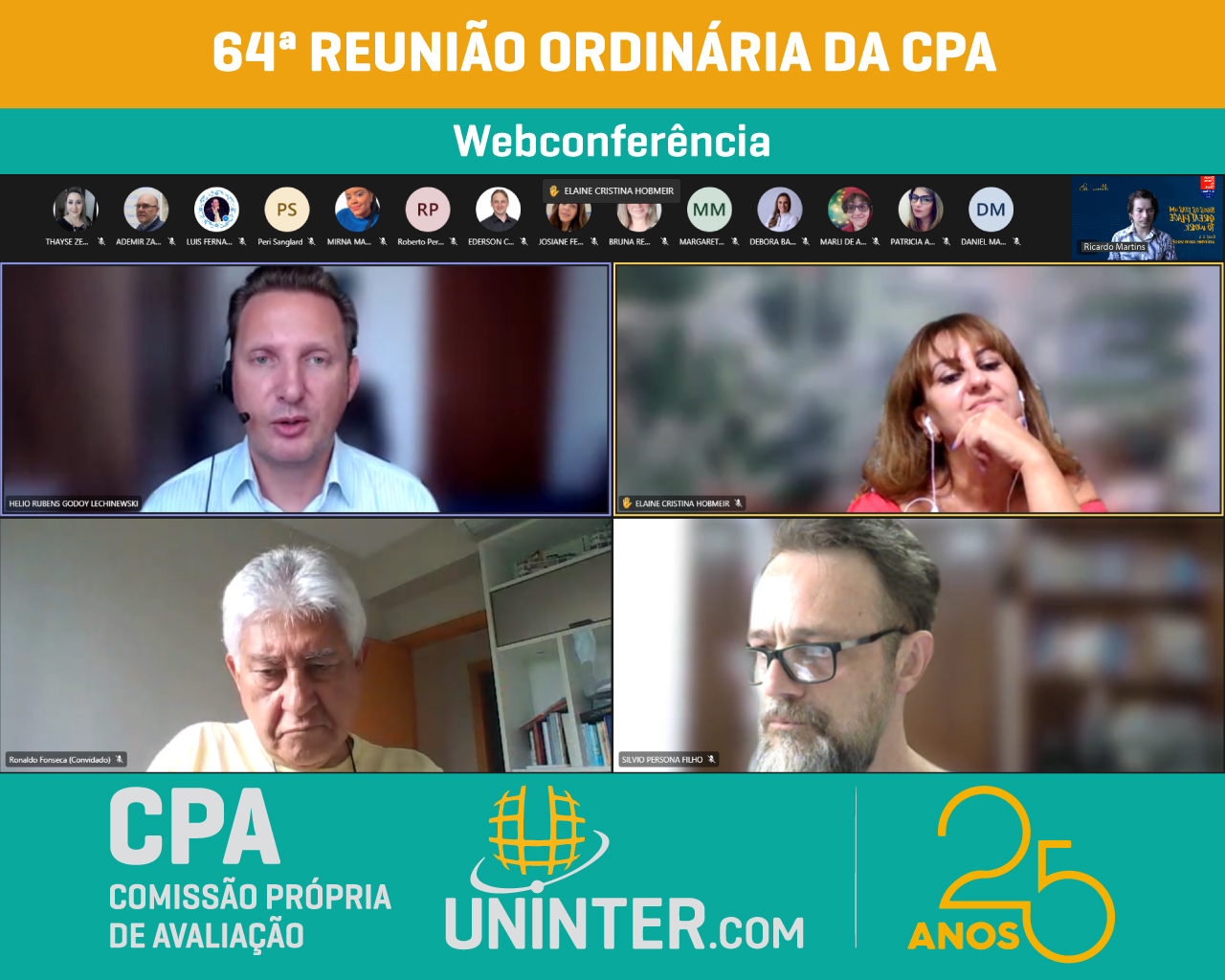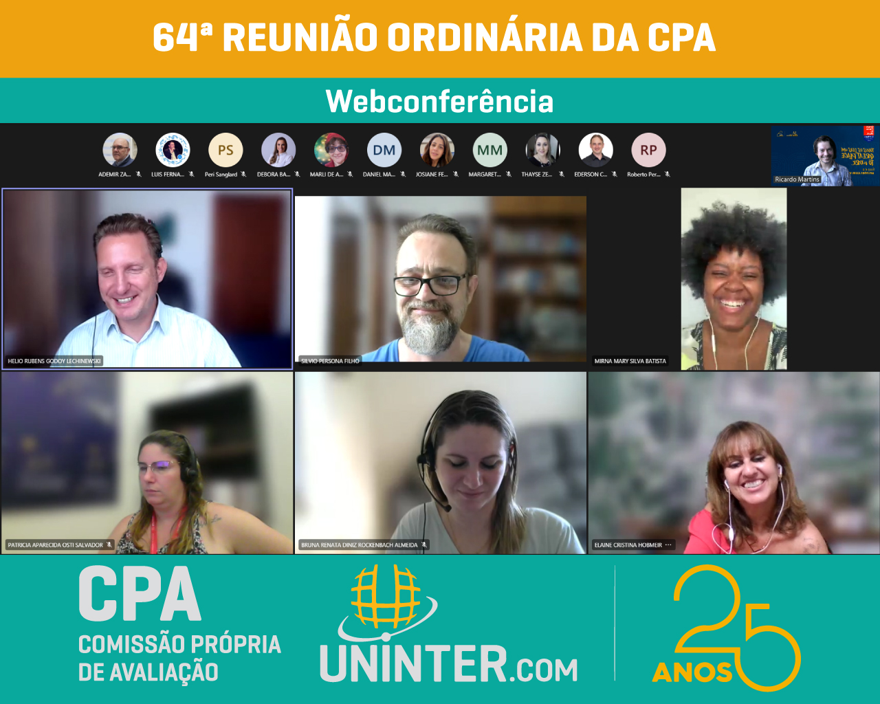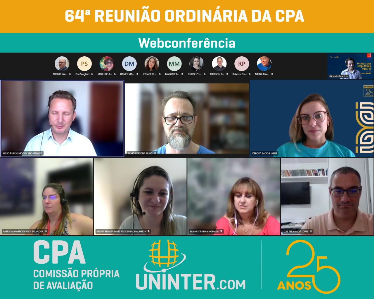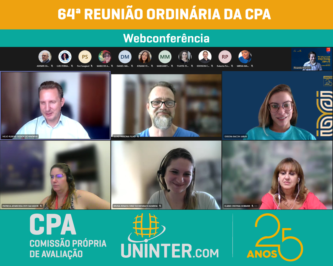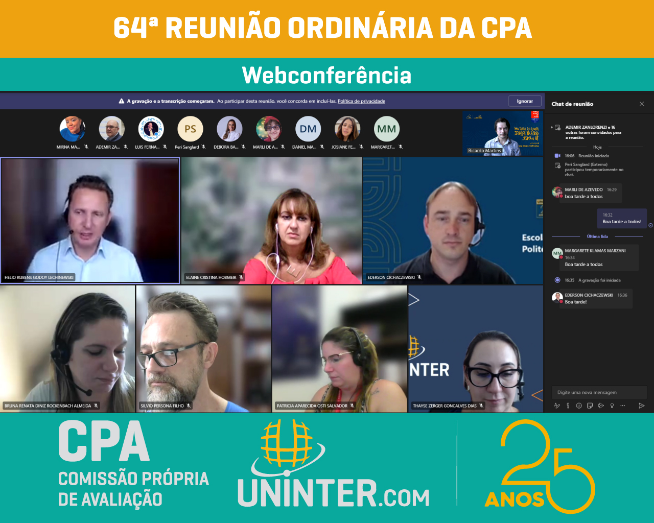 📊No dia 23 de fevereiro 2022 realizamos a 64ª Reunião Ordinária da CPA da UNINTER, primeira do ano de 2022. Com os representantes reunidos remotamente participando por meio de webconferência na plataforma Teams.