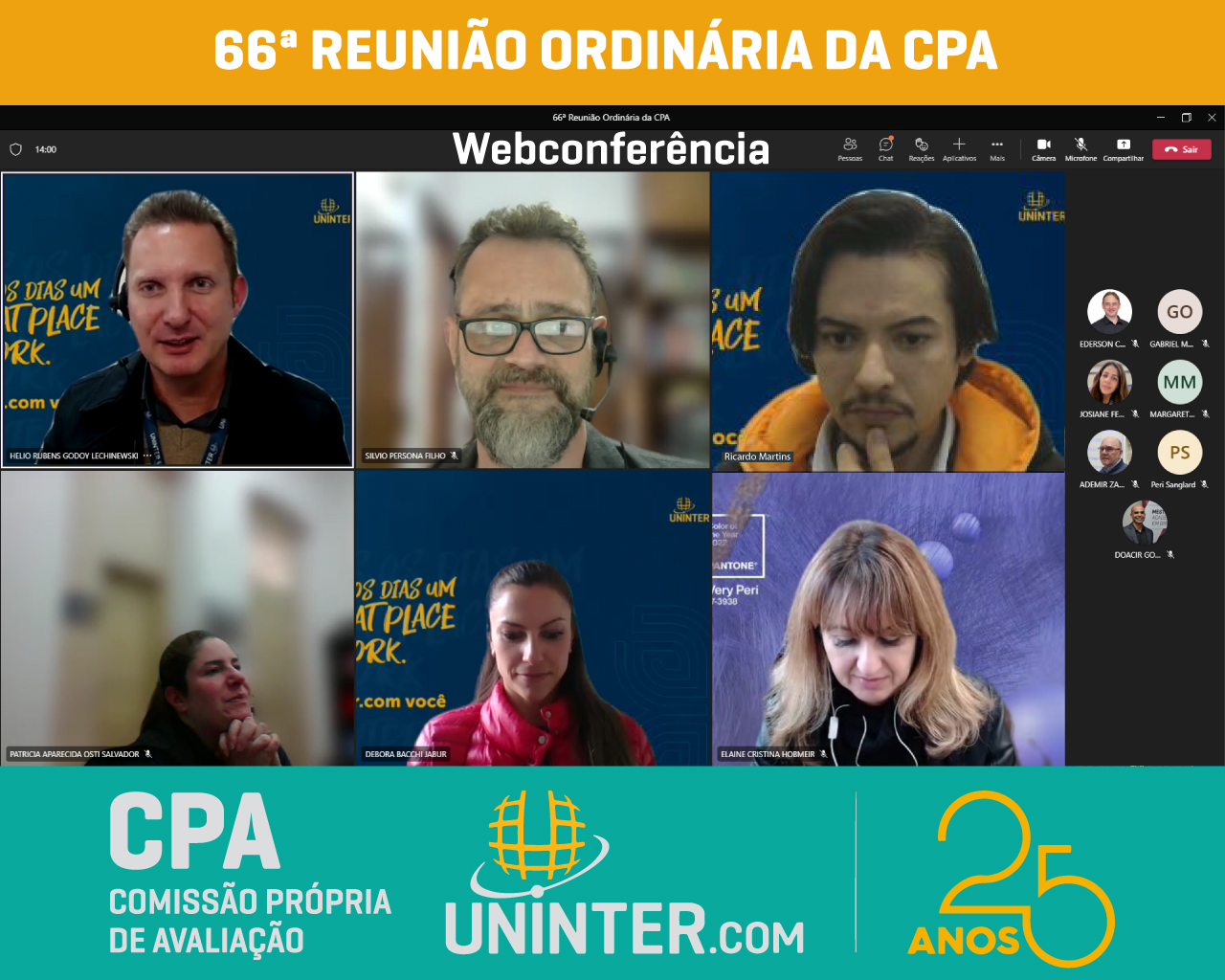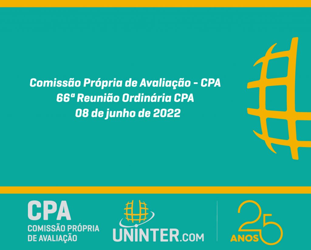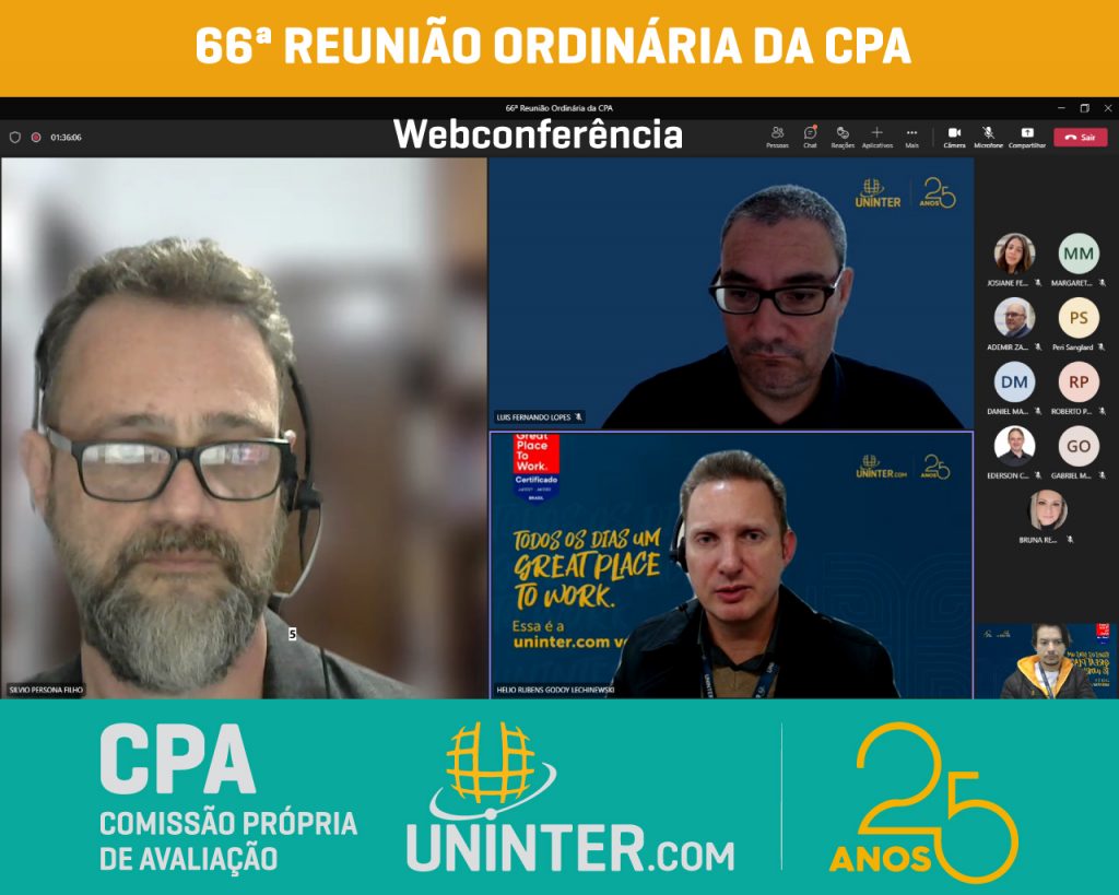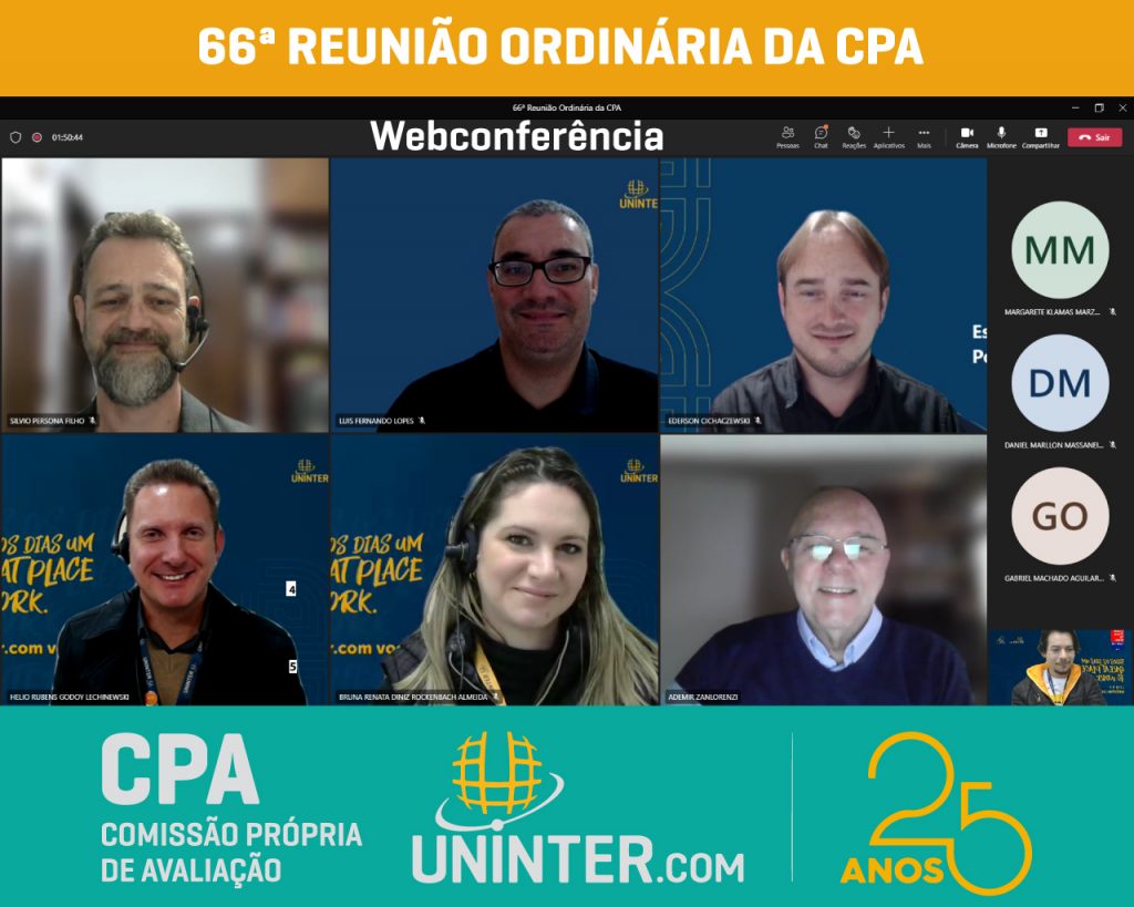 📊No dia 08 de junho de 2022 realizamos a 66ª Reunião Ordinária da CPA da UNINTER. Com os representantes reunidos remotamente, participando por meio de webconferência na plataforma Teams.