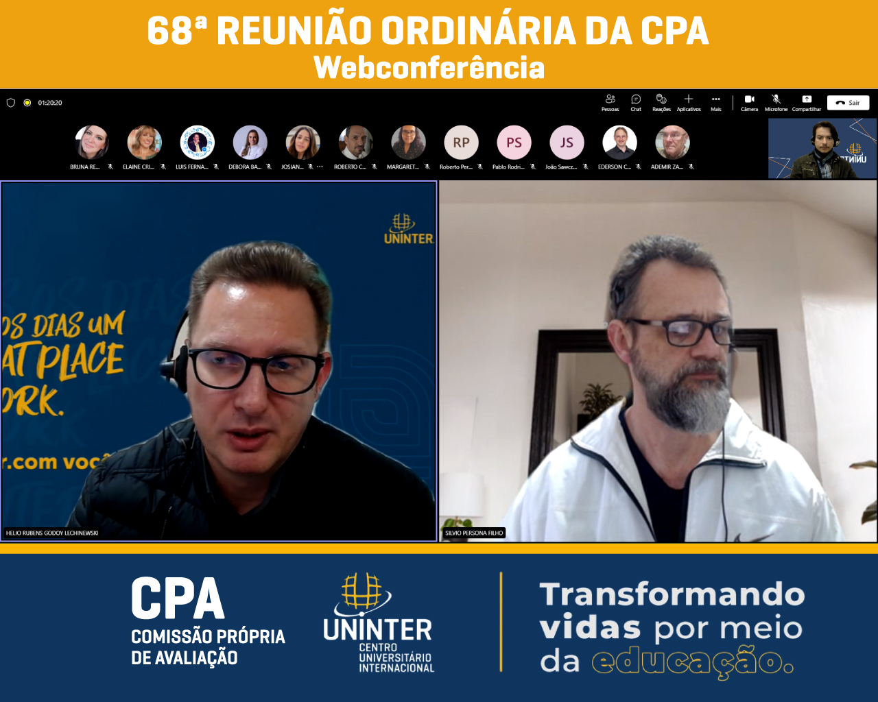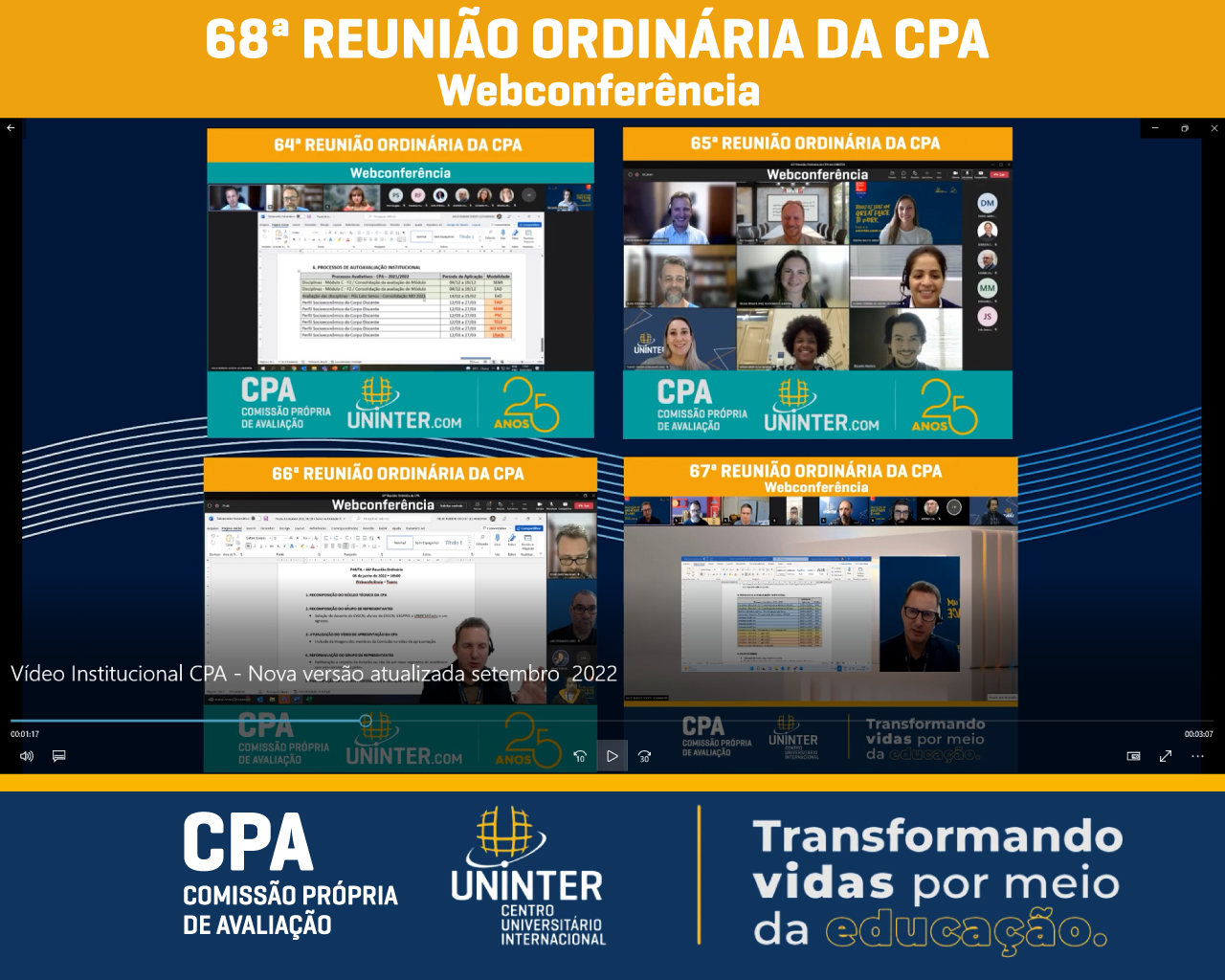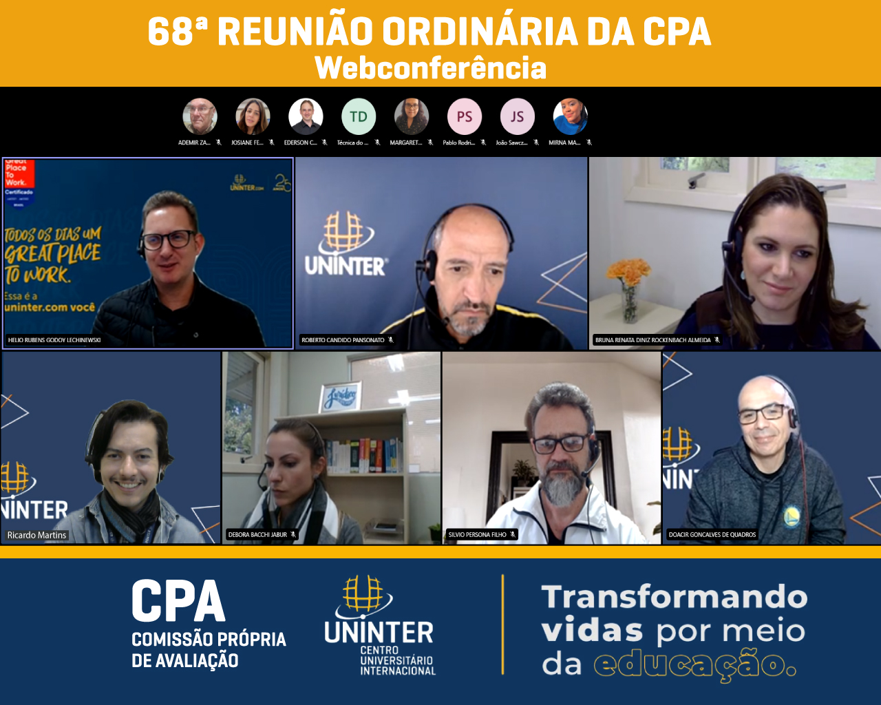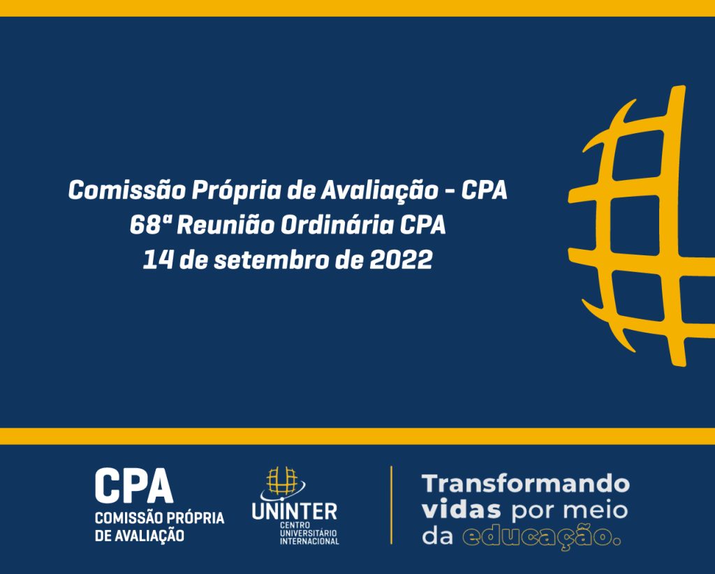 No dia 14 de setembro de 2022 realizamos a 68ª Reunião Ordinária da CPA da UNINTER. Com os representantes reunidos remotamente, participando por meio de webconferência na plataforma Teams.