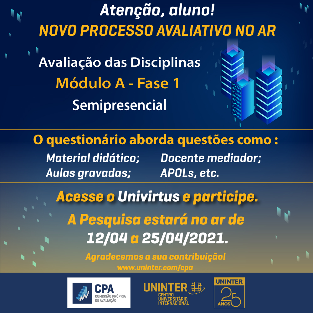 Avaliação das Disciplinas - Módulo A – Fase 1 - Semipresencial.