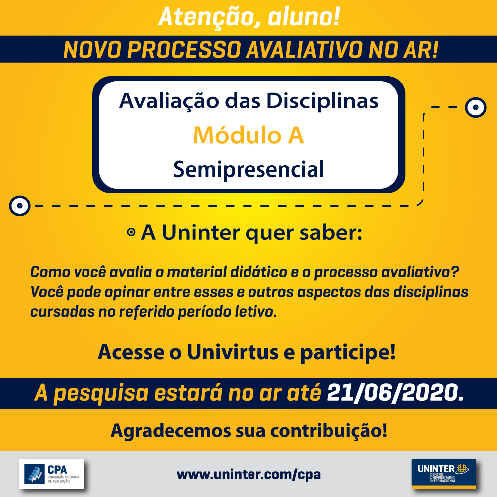 Avaliação das Disciplinas Módulo A – Semipresencial.
