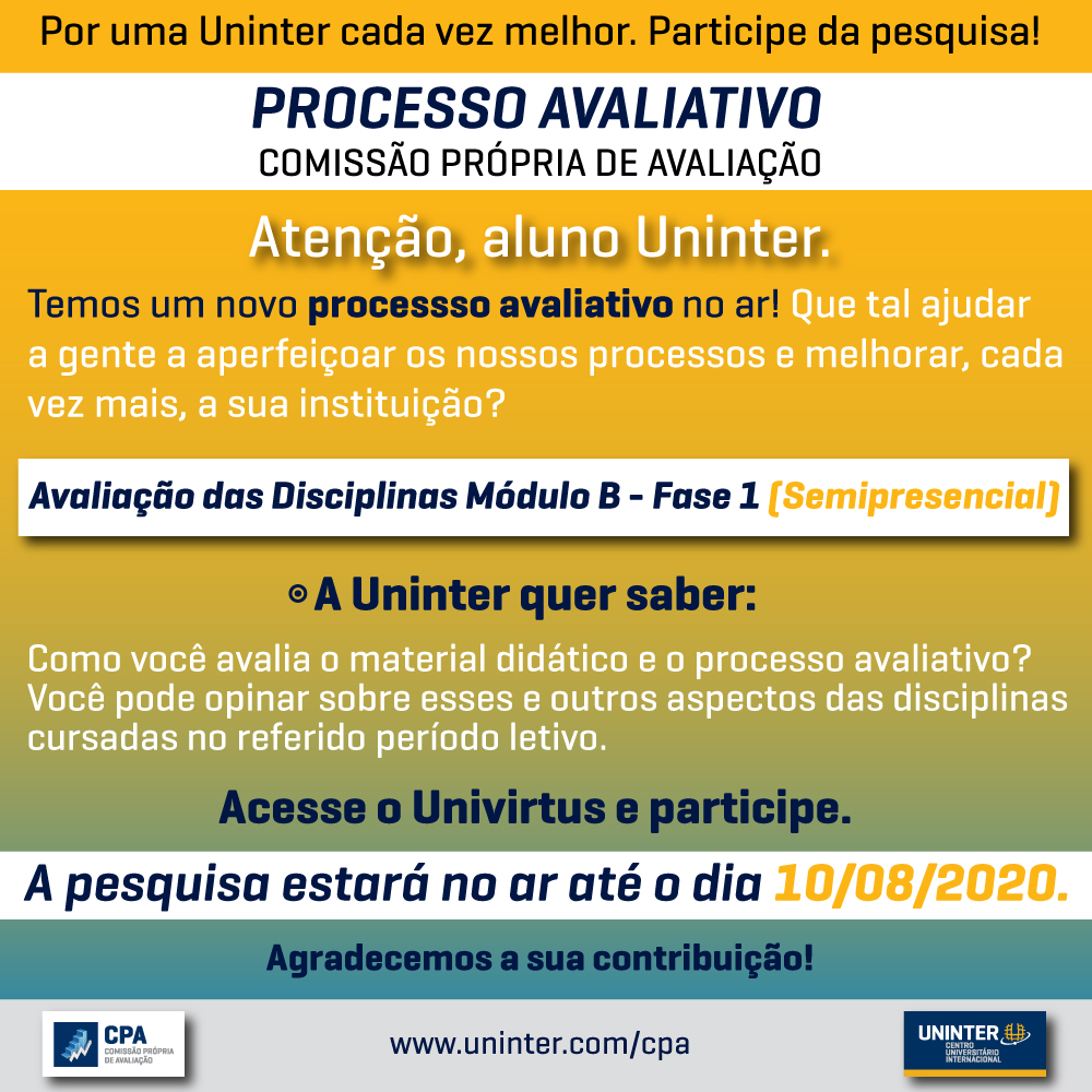 Atenção, aluno Uninter.