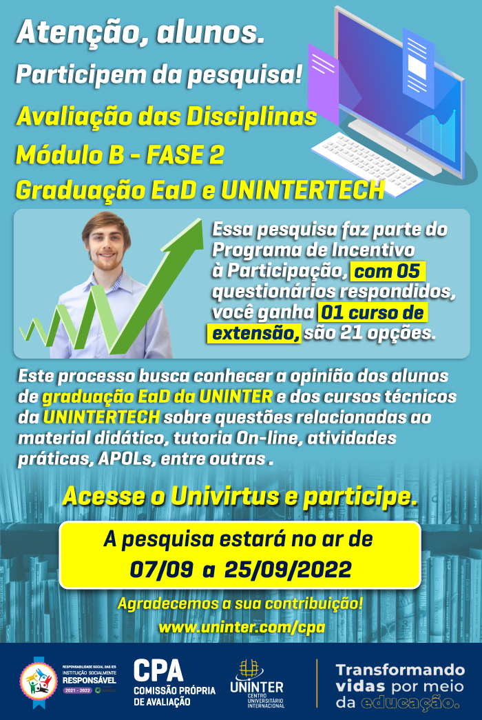 Avaliação das Disciplinas - Módulo B – FASE 2 - Graduação EaD e UNINTERTECH.