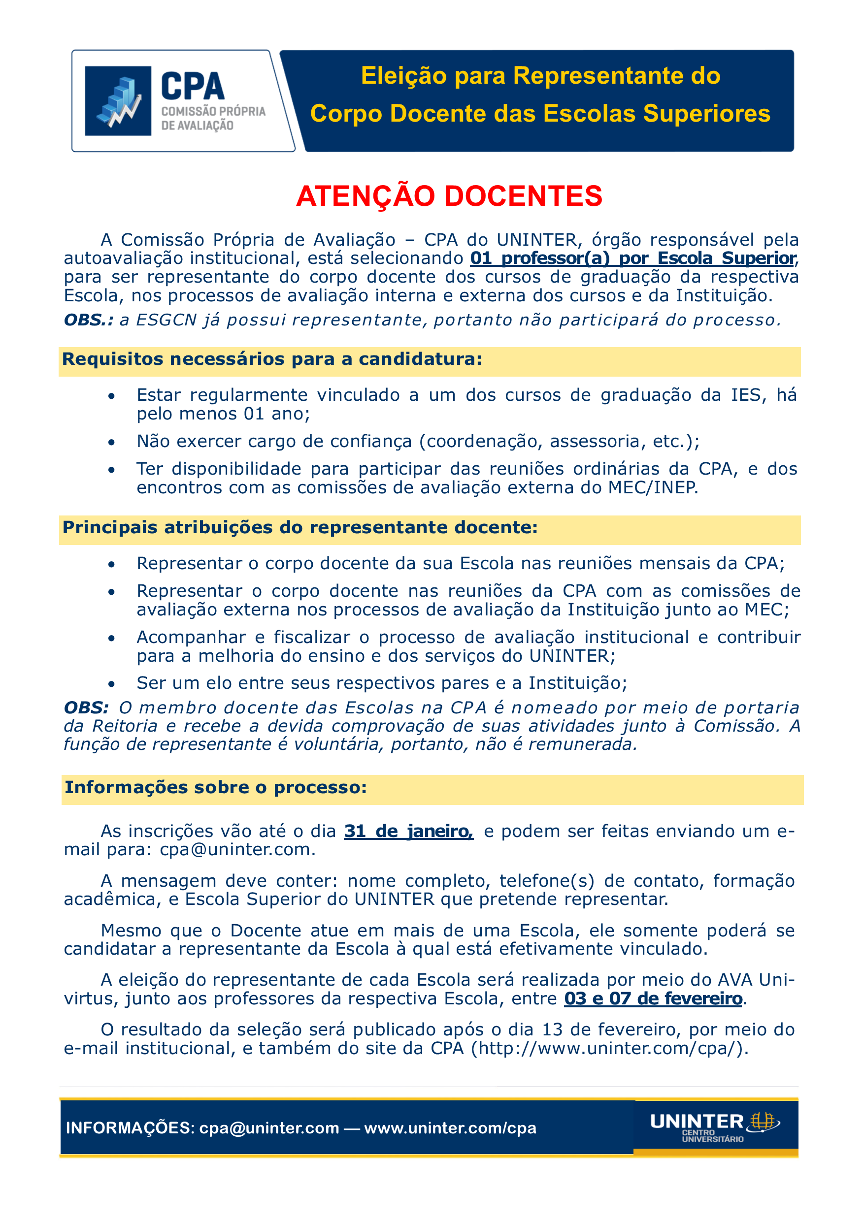 Eleição para Representante do Corpo Docente das Escolas Superiores