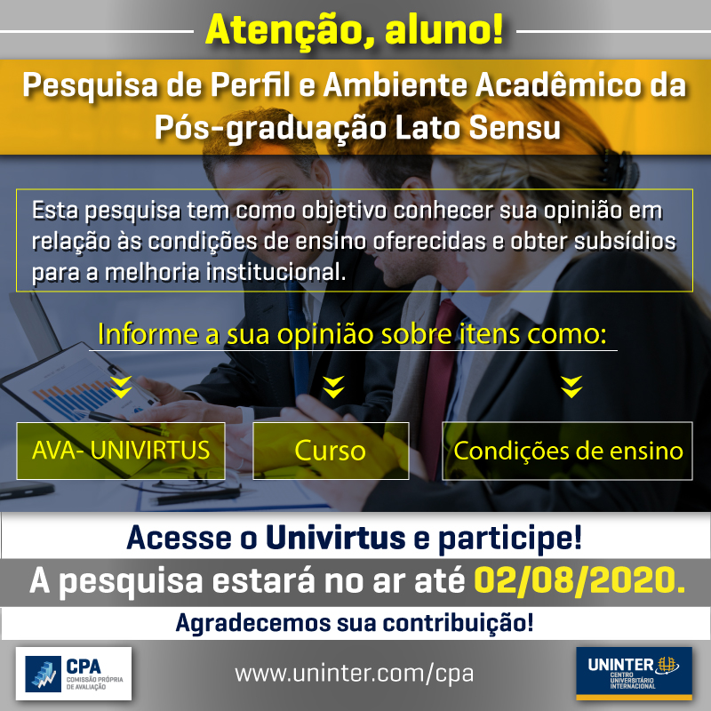 Pesquisa de Perfil e Ambiente Acadêmico da Pós-graduação Lato Sensu.