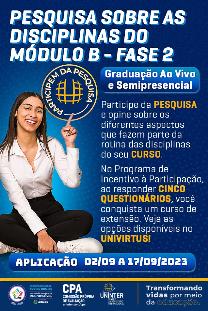 Pesquisa Sobre Avaliação das Disciplinas – Módulo B – SEMI e Ao Vivo – Fase 2