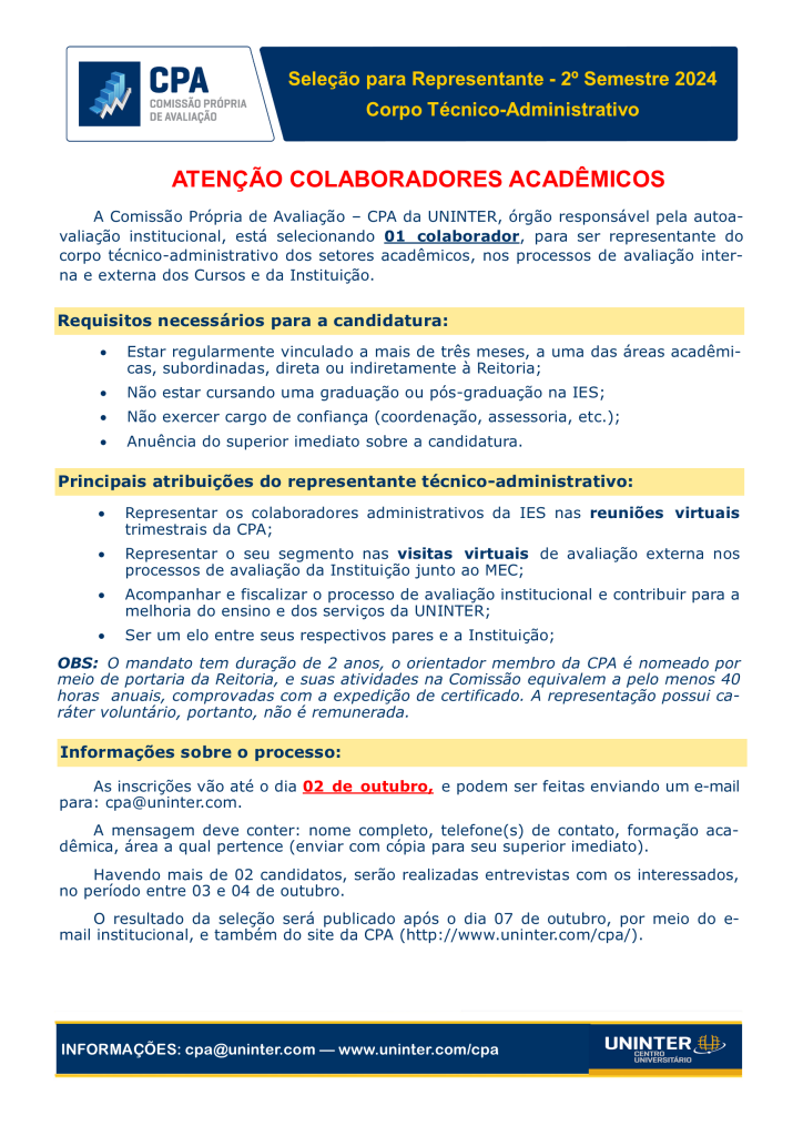 Seleção de Representante Técnico-Administrativo – Setembro de 2024