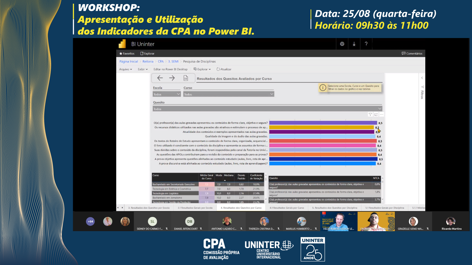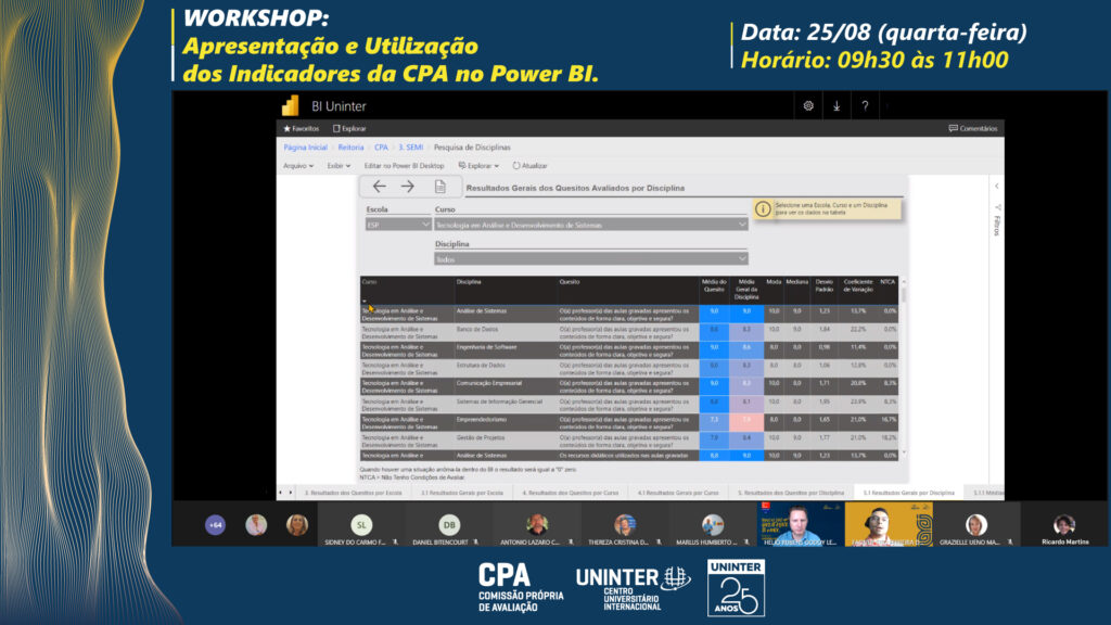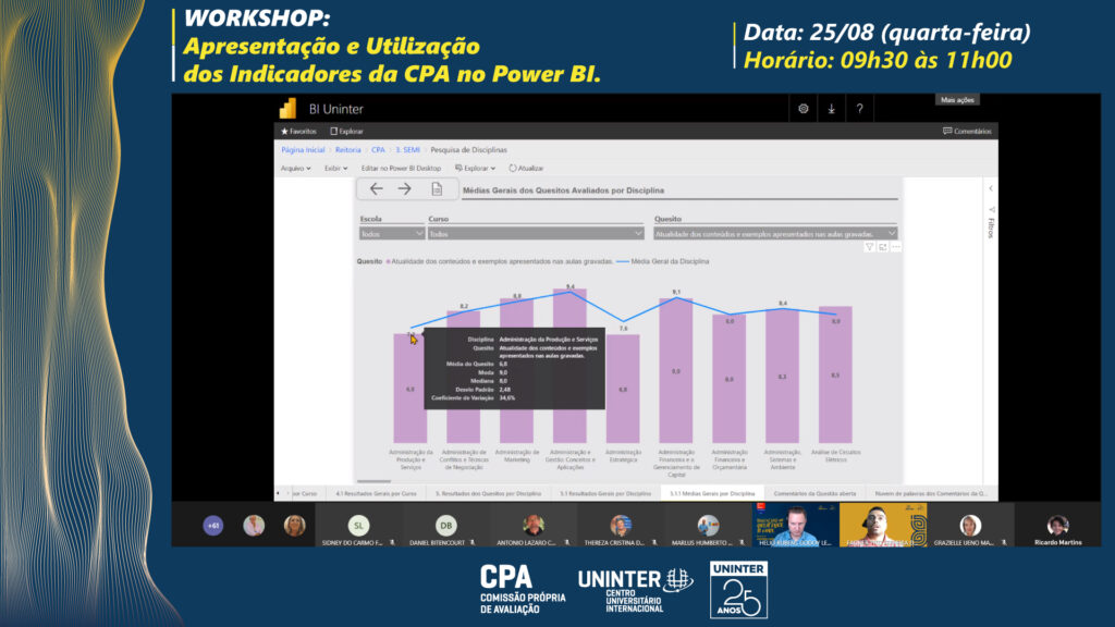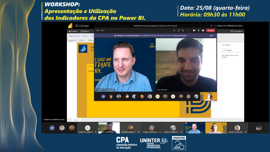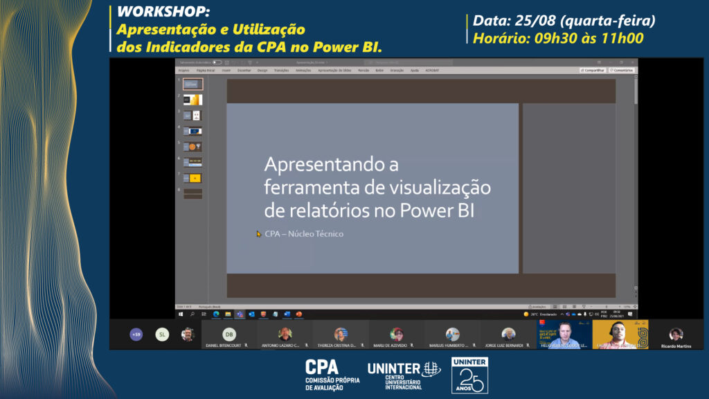 No dia 25 de agosto de 2021, realizamos o WORKSHOP: Apresentação e Utilização dos Indicadores da CPA no Power BI.