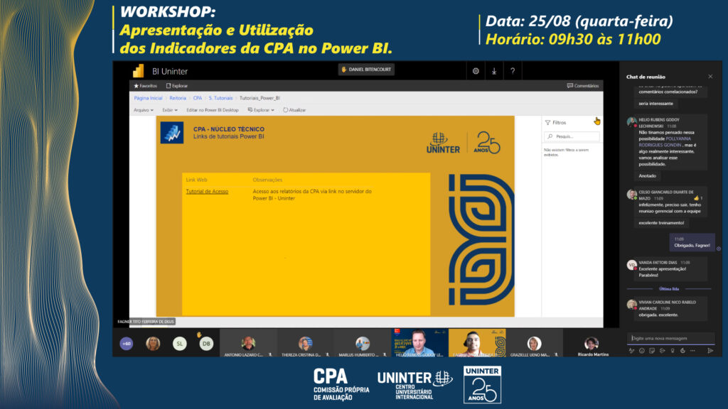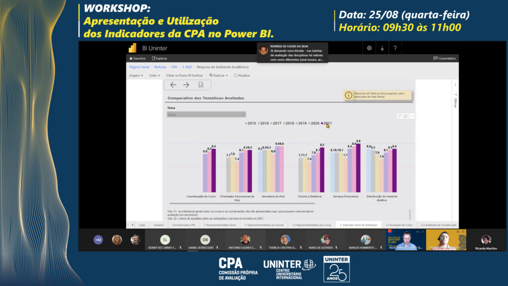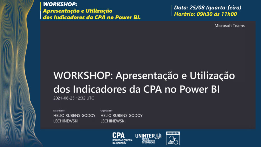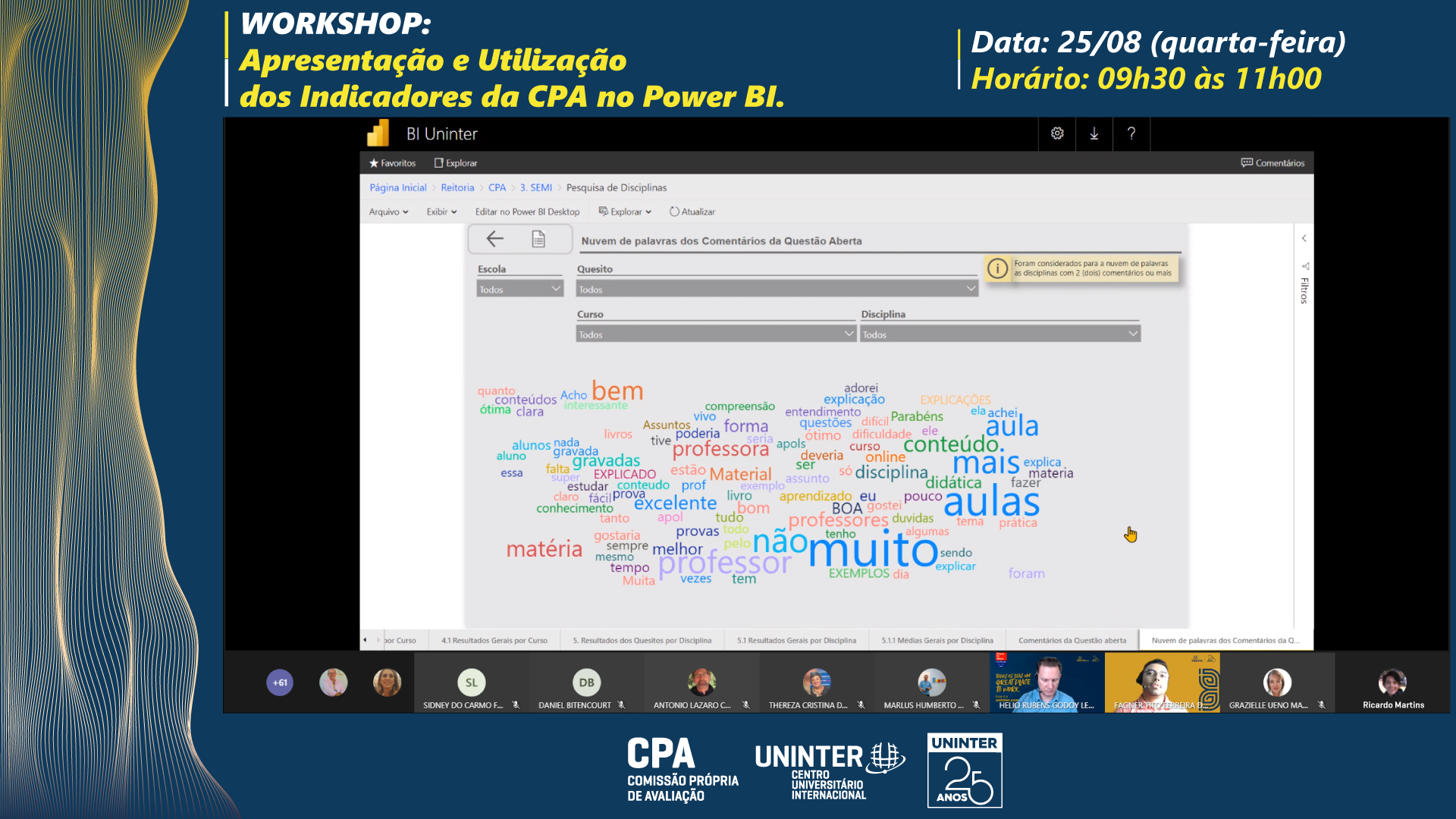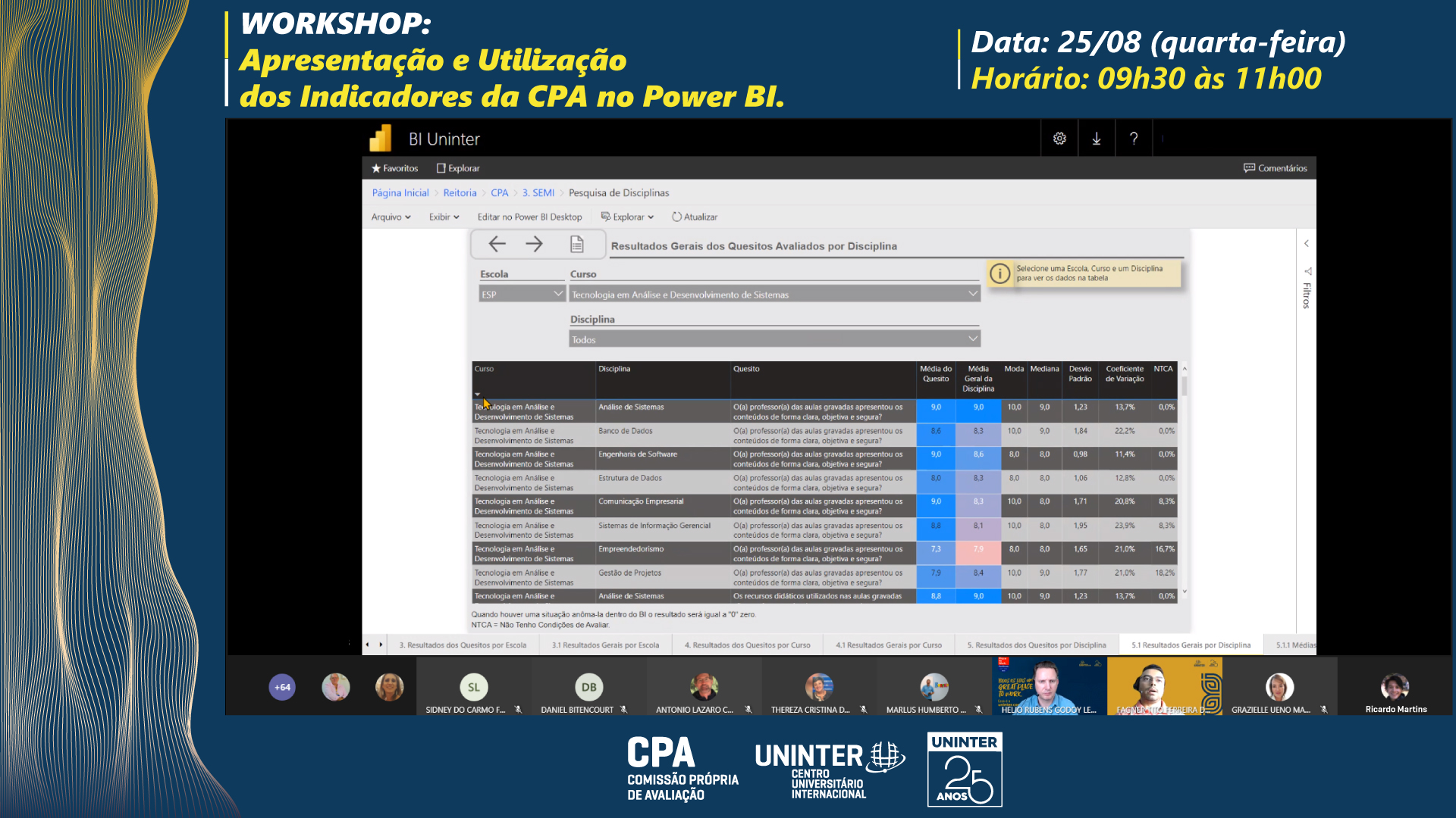 No dia 25 de agosto de 2021, realizamos o WORKSHOP: Apresentação e Utilização dos Indicadores da CPA no Power BI.