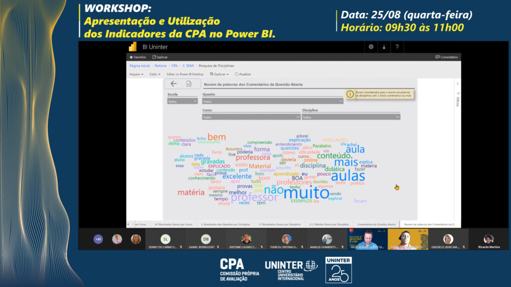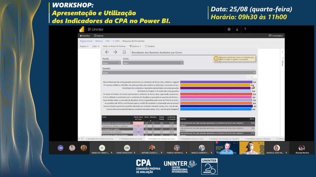 A apresentação e utilização dos indicadores das pesquisas da CPA, na ferramenta Power BI foi um sucesso.