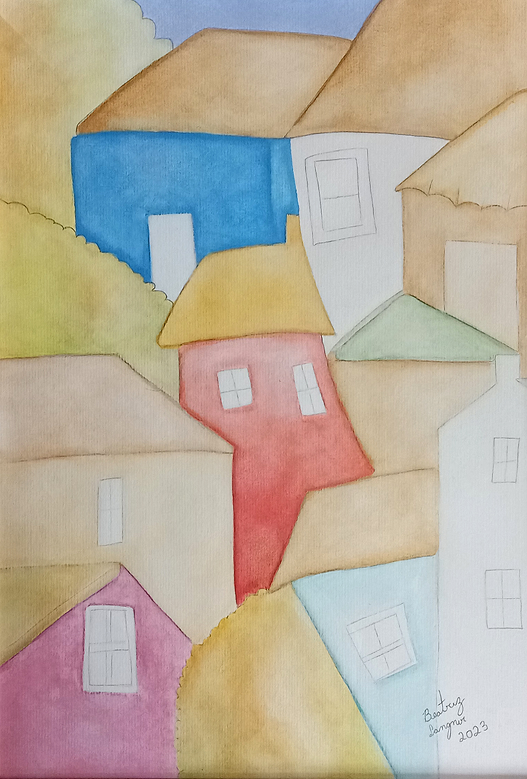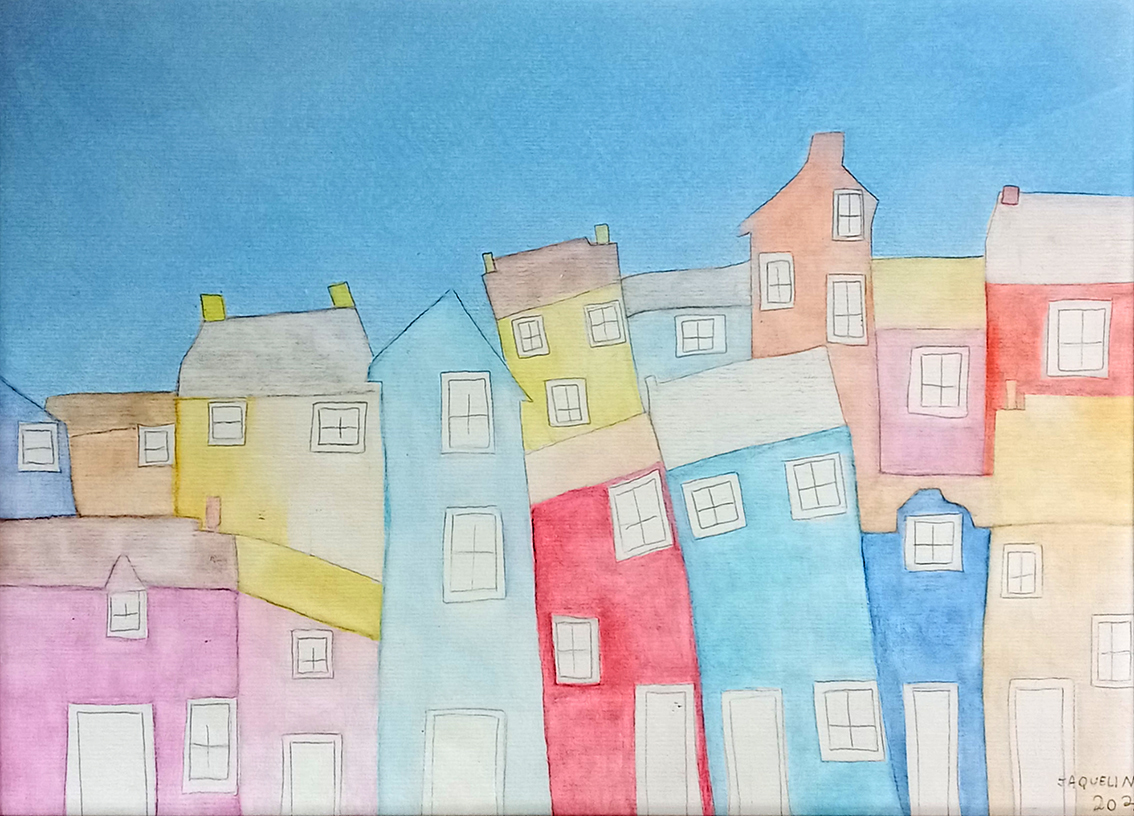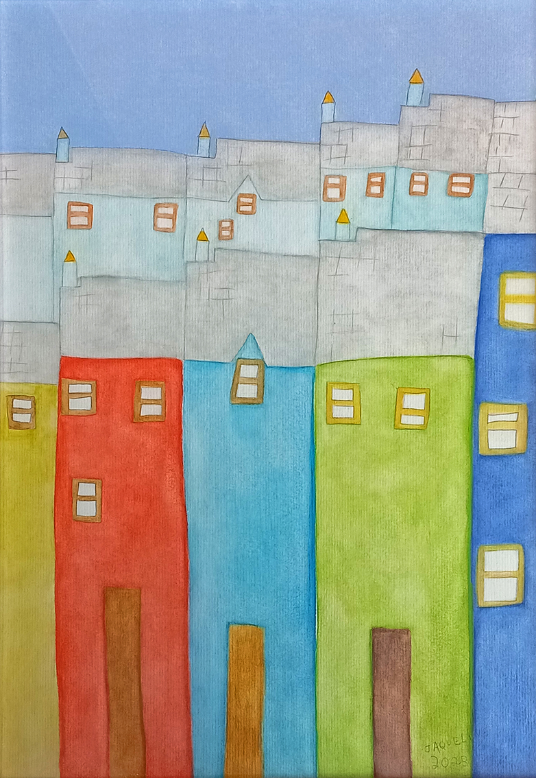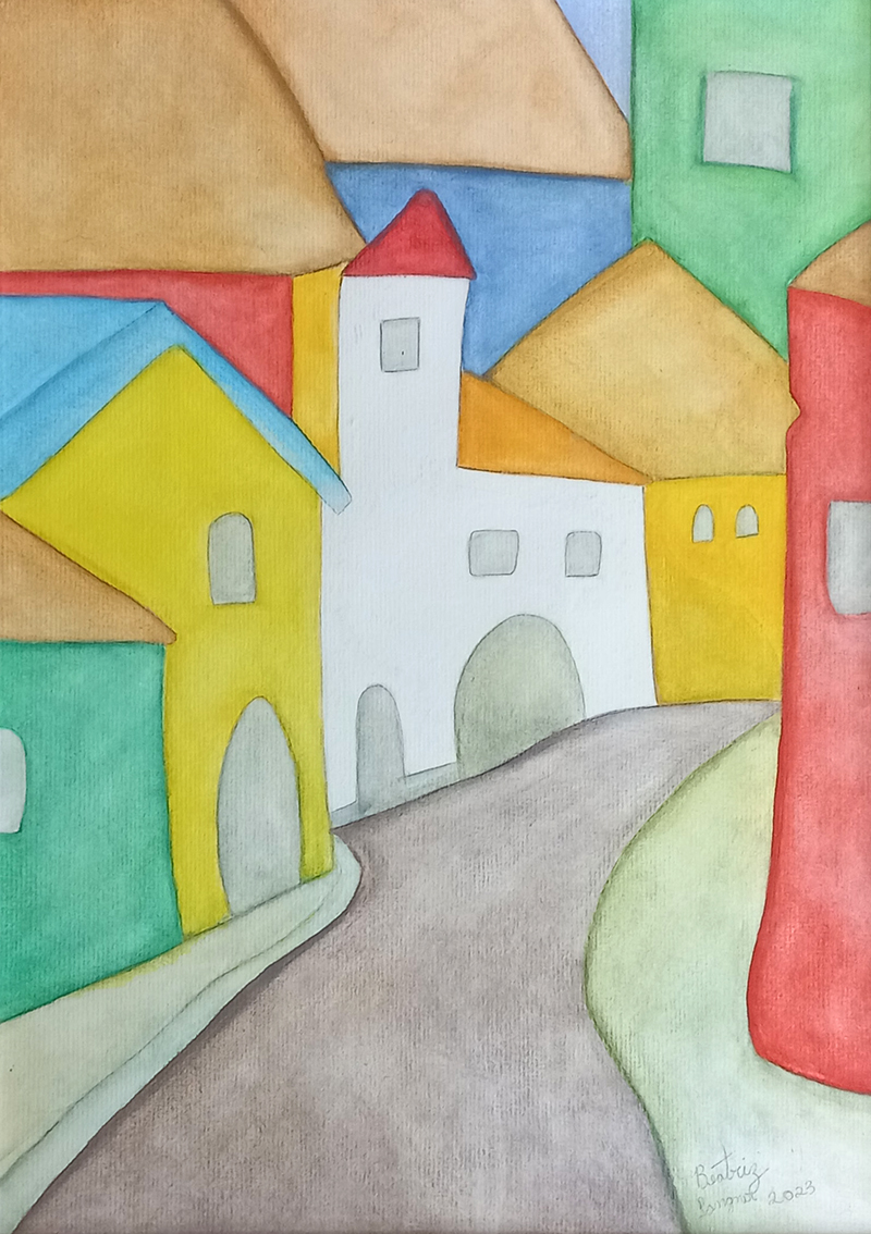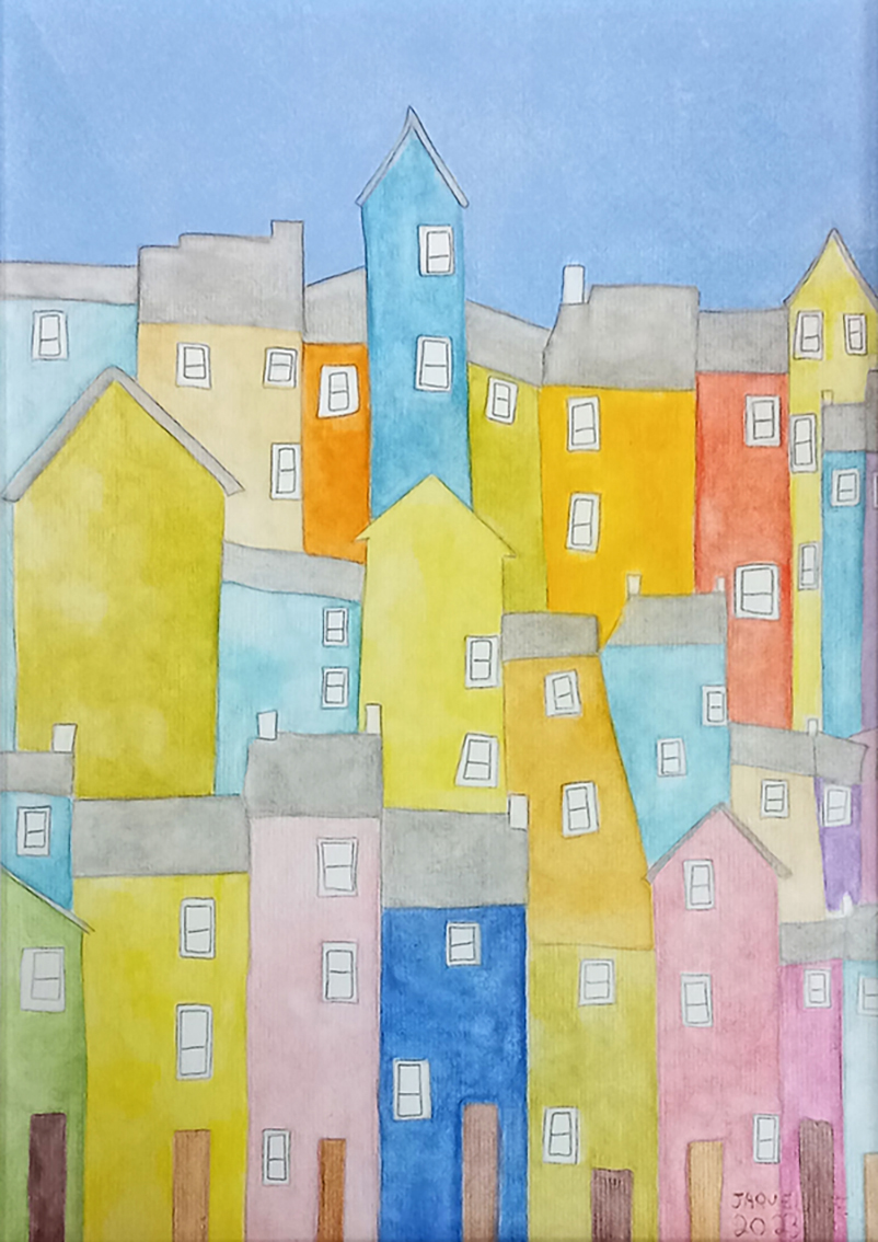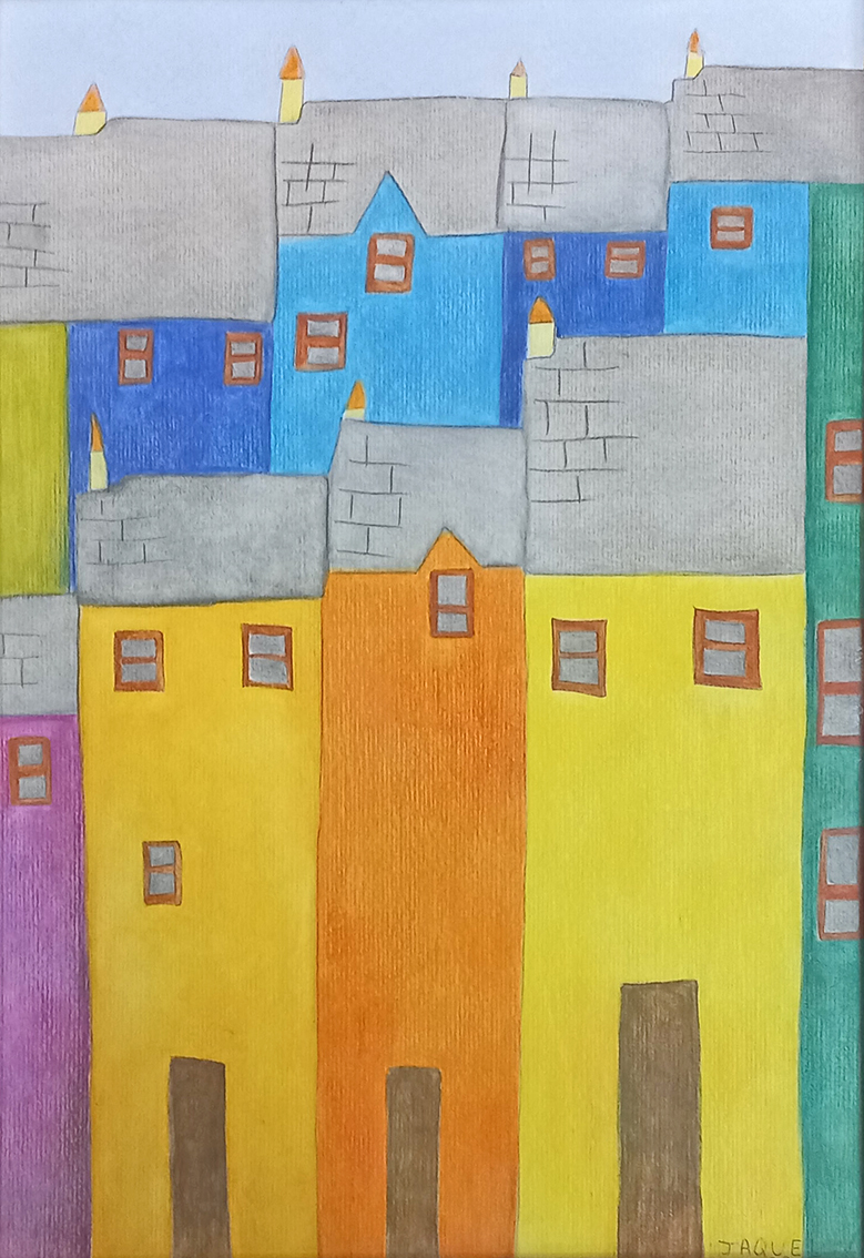 A exposição “Casarios” é fruto de um projeto desenvolvido no Programa Educação para o Trabalho da Escola de Educação Básica Municipal Tomaz Edson de Andrade Vieira, por meio das Oficinas de Desenho e Pintura ministradas pela professora Kátia Manfré. As artistas Jaqueline Faria da Silva e Beatriz Langner nos apresentam suas produções gráficas e pictóricas, realizadas com giz pastel seco e aquarela.