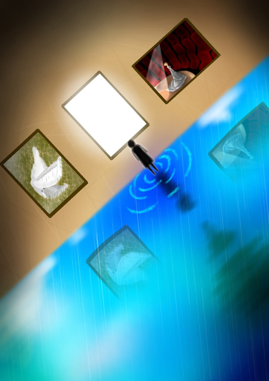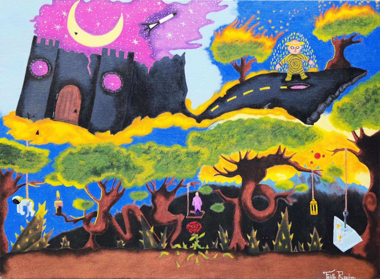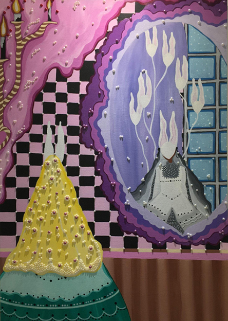 Bárbara Franziska de Souza Rohrmoser - No Reino dos Sonhos há um espelho - Pintura, óleo e pérolas plásticas sobre tela - 40 X 70 cm - Camaçari - BA - 2024