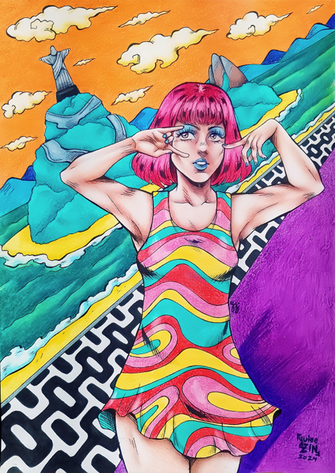 Julia Niz da Silva - Garota de Ipanema - Grafite, caneta liquid ink e lápis aquarelável s/ papel - 21 x 29 cm - Osasco - SP - 2024
