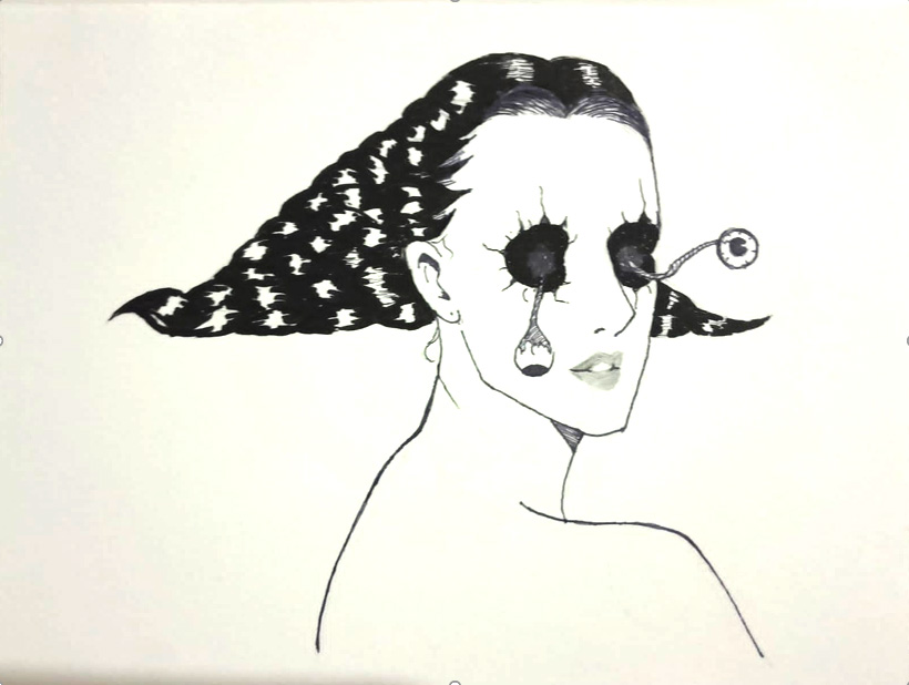 Maria Eduarda C. M. de Andrade - Olhos para fora - Desenho técnica Loomis, caneta nanquim s/ papel - 18x24 cm - Paulista-PE - 2025
