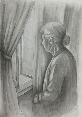 Milena Koziol - Entre vidros - Grafite s/ papel - 29,7X42 cm – Novo Hamburgo-RS - 2025