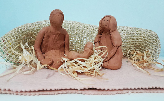 Marcelli Garcia - Nascimento de Jesus - Modelagem em argila, palha e tecido - 20x9cm - Guarujá-SP - 2025