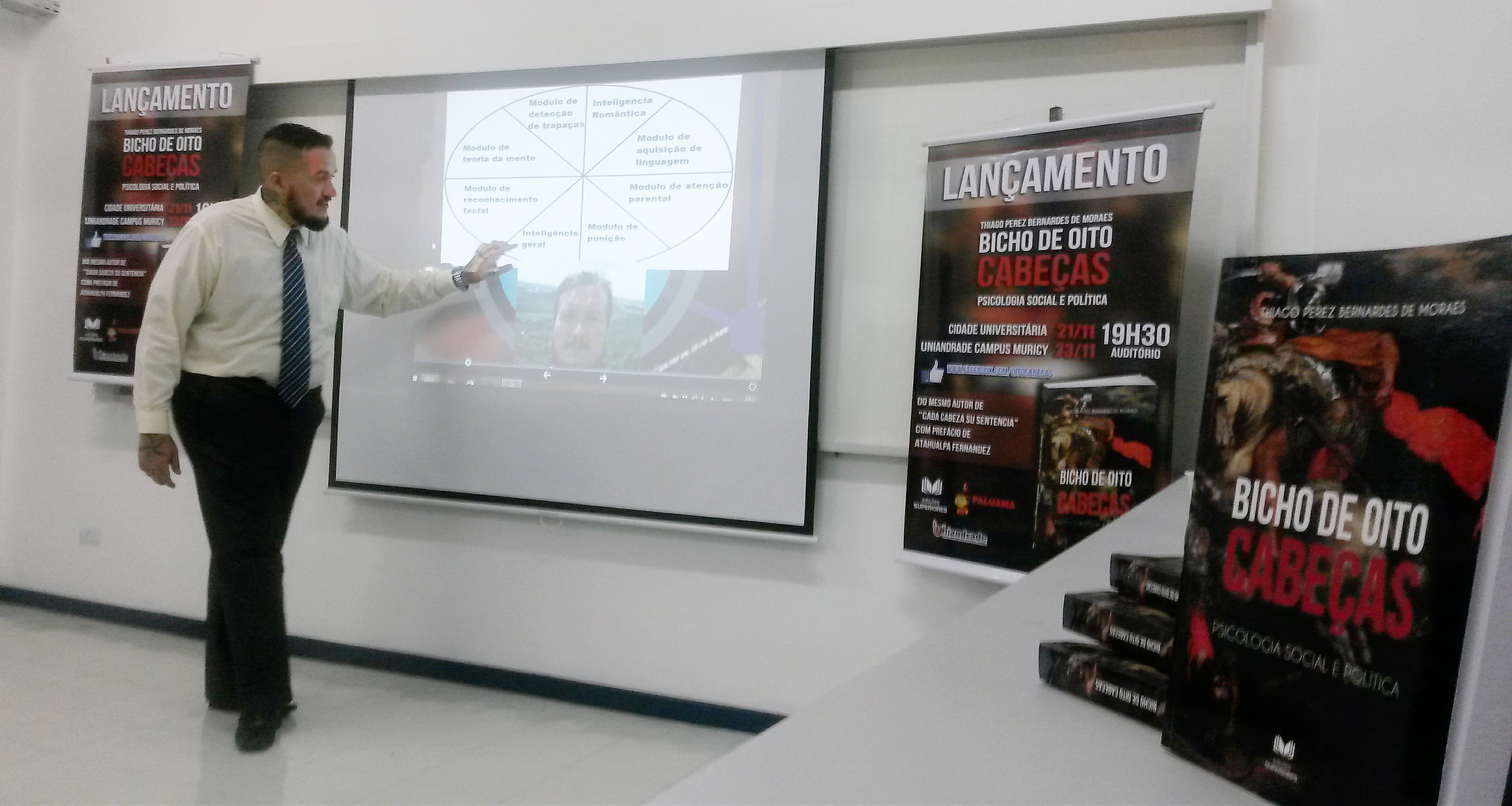 Egresso do curso de Ciência Política do Centro Universitário Internacional Uninter e doutor em psicologia social, Thiago Perez Bernardes de Moraes, autor de mais 70 artigos publicados em uma série de periódicos nacionais e internacionais, acaba de publicar seu novo livro, intitulado “Bicho de Oito Cabeças: Psicologia Social e Política”. O lançamento ocorreu nos dias 21 e 23 de novembro e contou com a presença de docentes, pesquisadores e estudantes de Curitiba e região.