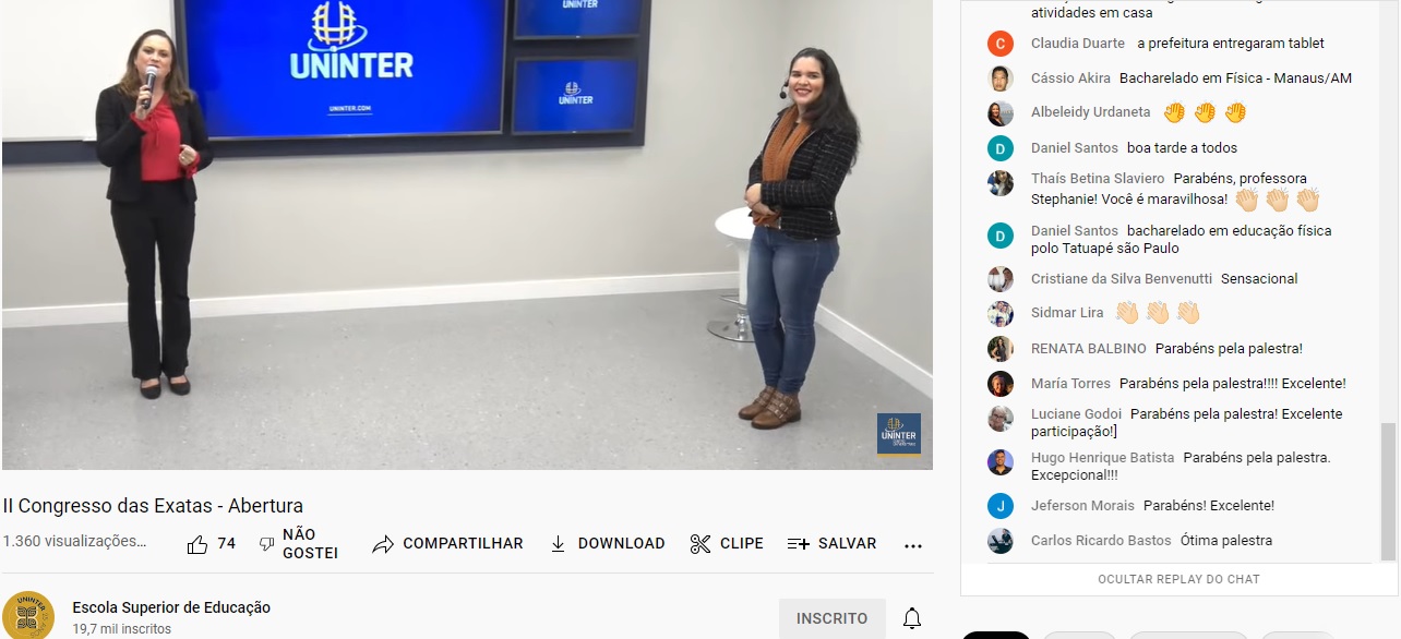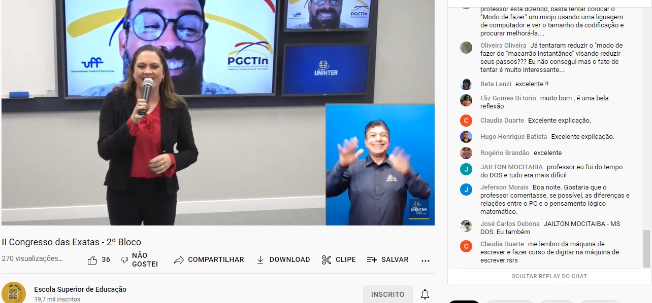 As palestras contaram com apresentação da coordenadora Flávia e da professora Ana Paula Elias, que também fez a mediação das interações recebidas pelo chat. Mais de 1,6 mil pessoas acompanharam o evento por meio do canal do Youtube da ESE. O primeiro e segundo blocos seguem disponíveis para livre acesso.