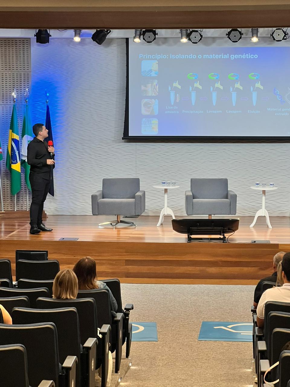 Entre os temas de palestras, Modena debateu o “Trabalho da Biomedicina na área de Neurofisiologia”, seguido por Jhonatan Dias com “Diagnóstico molecular por DNA e no aumento da demanda na área após a pandemia” e finalizando com Thiago Massuda com o tema “Perícia criminal e a realidade do CSI brasileiro”.