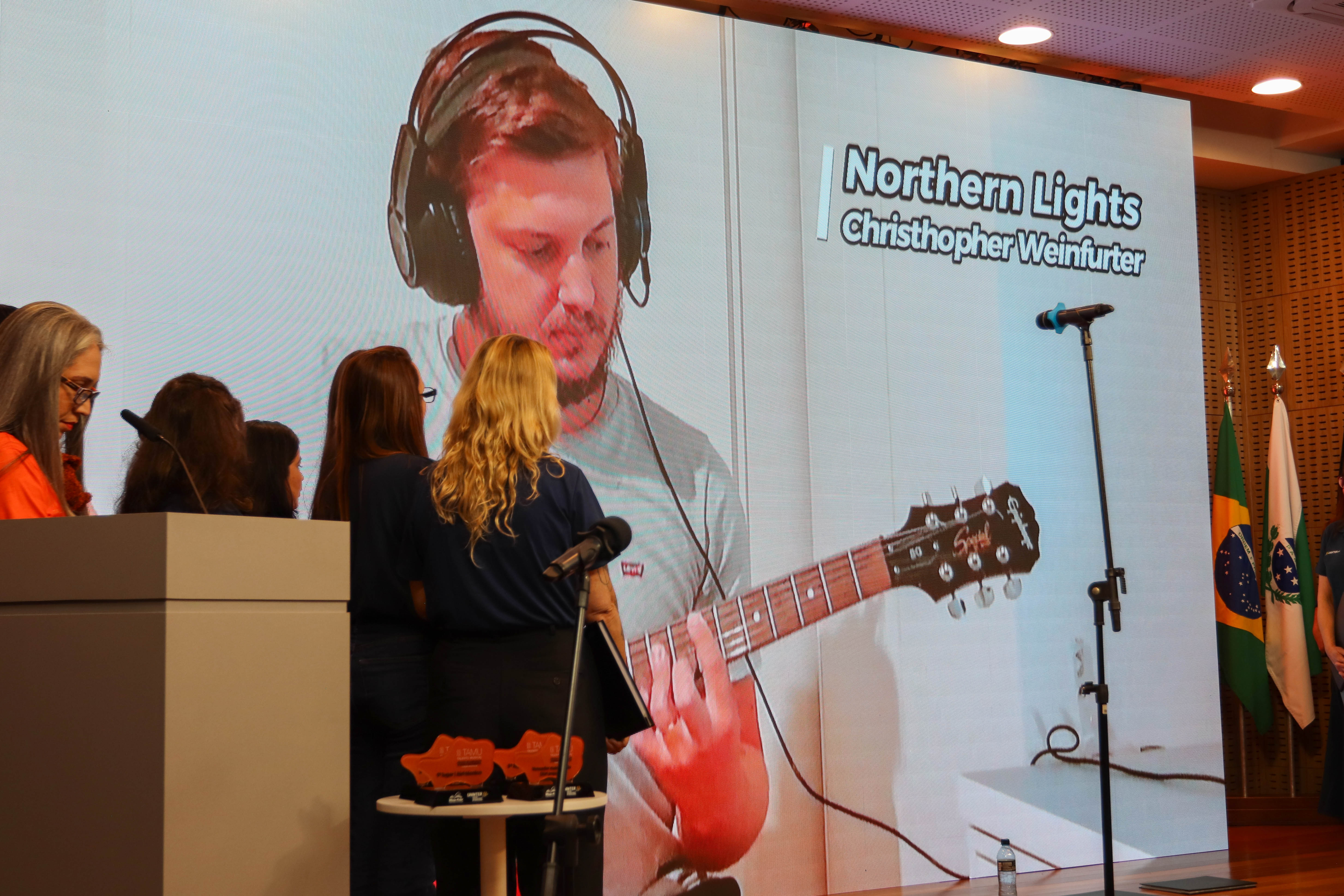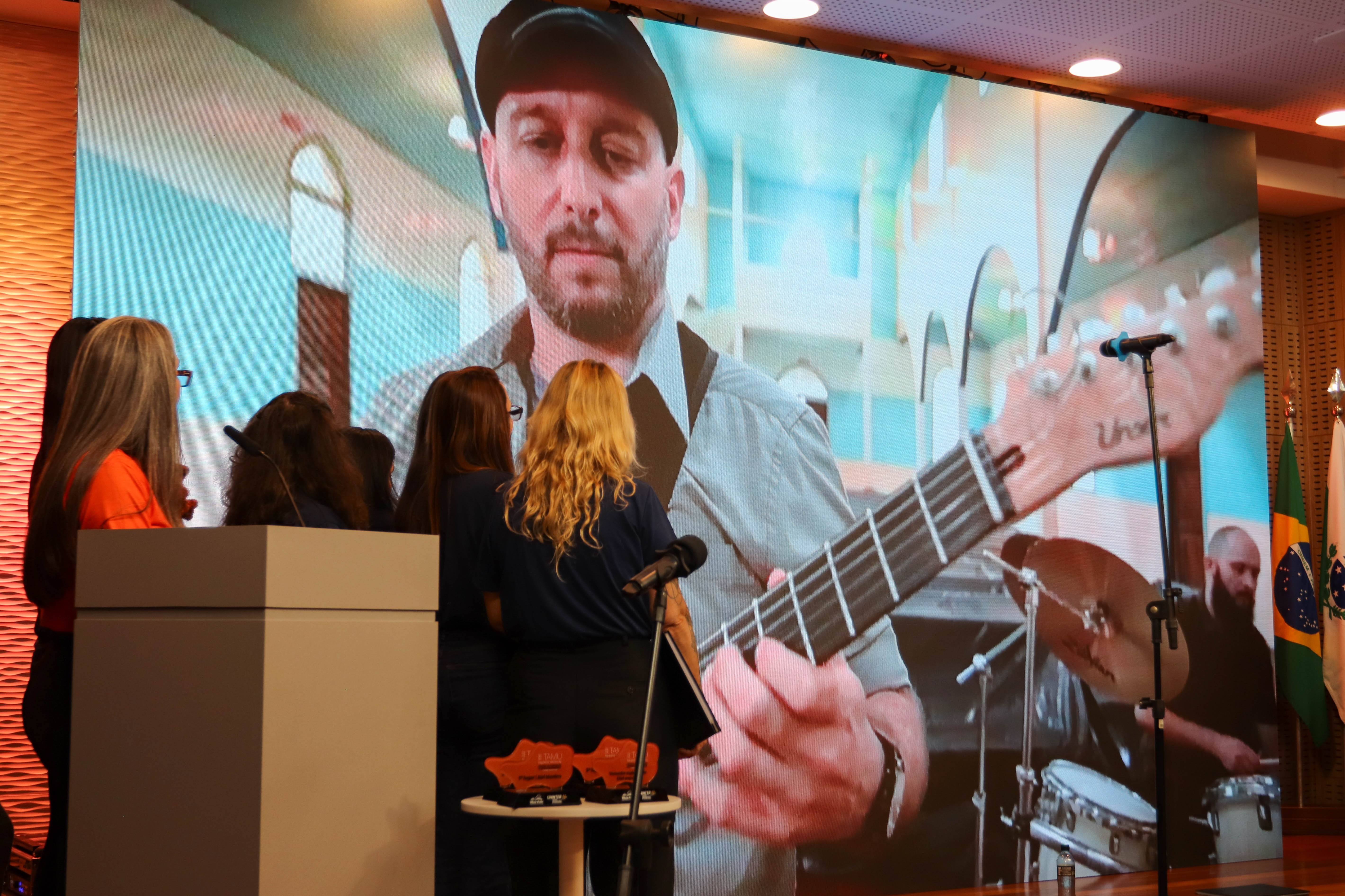 Os vencedores foram revelados pela mestre de cerimônia da noite, a professora Ana Lucia Zattar. Por meio da exposição na Galeria Virtual, o músico Erison Rita teve o vídeo melhor avaliado pelo público, com 569 curtidas, e levou o troféu pelo júri popular com a música “Rising”. O candidato de Criciúma (SC), foi representado pelo professor Alysson Siqueira na entrega do prêmio.