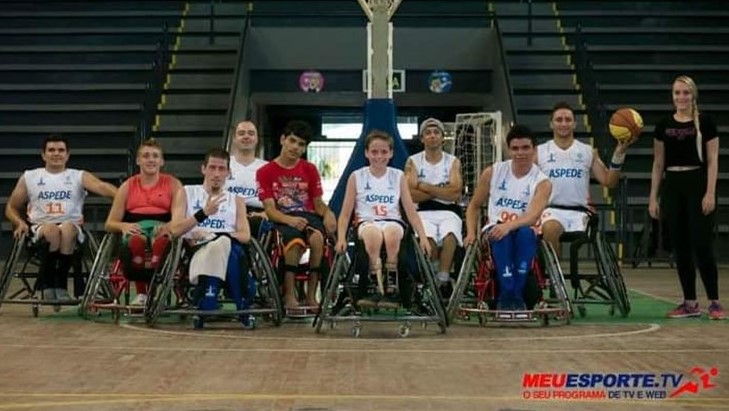 Durante a formação em Educação Física, Evelyn conheceu a Aspede e se “encantou” pelo time que joga basquetebol em cadeira de rodas. Decidiu se aproximar para entender melhor a modalidade e soube que o treinador estava de saída, por isso estavam à procura de outra pessoa para dar continuidade.