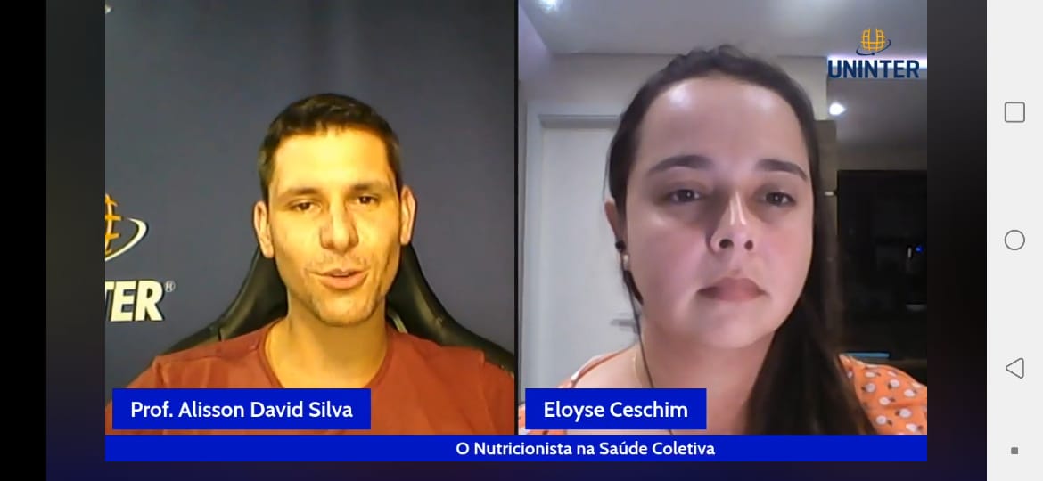 Para falar sobre as áreas de atuação dos nutricionistas, o professor do curso de Nutrição da Uninter, Alisson David Silva, convidou a nutricionista Eloyse Ceschim para um bate-papo com os alunos.