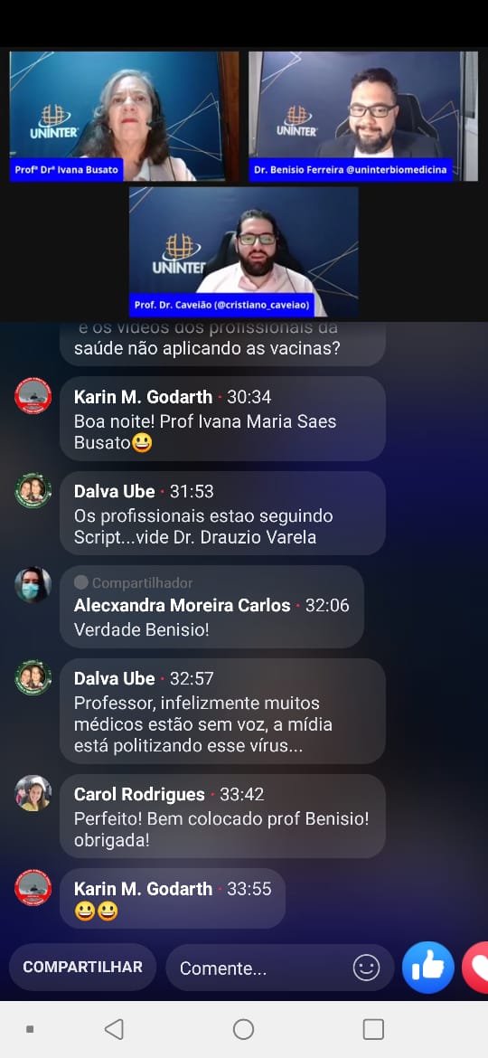 Você pode assistir à live completa, que aconteceu no dia 31.mar.2021, na página Escola de Saúde, Meio Ambiente e Humanidades – Uninter no Facebook.