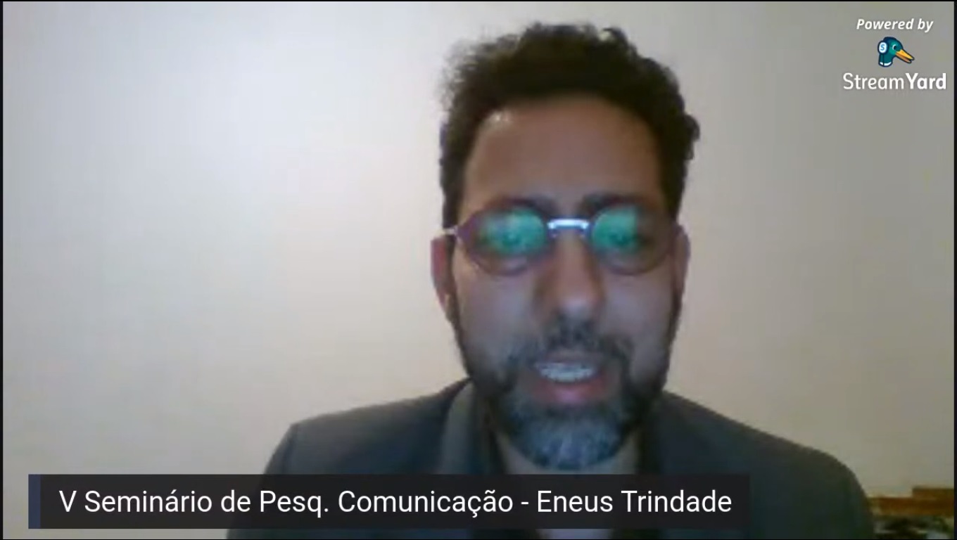 A mesa continuou com a participação de Eneus Trindade, que é professor e publicitário, doutor em Ciências da Comunicação pela USP e pós-doutor em Antropologia Visual pela Universidade Aberta de Portugal. Em 2018, atuou como professor convidado na Chair Numeratie Publicitaire au CELSA Sorbonne Universités, na França.
