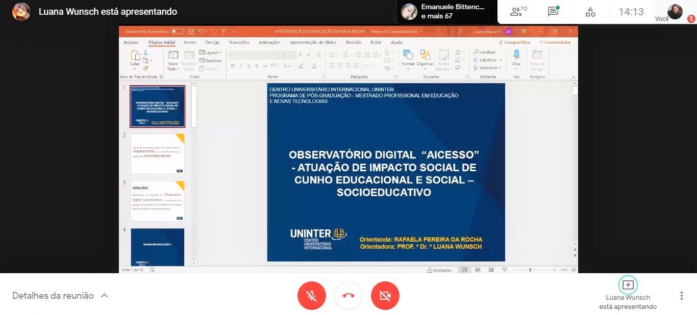 “Estamos fechando o mestrado da Rafaela no protótipo, que daria continuidade no doutorado, com a aplicação do desenvolvimento dessa ferramenta. Ela queria muito que esse observatório digital estivesse conectado com a Fundação Wilson Picler, aqui da Uninter. Quero muito que esse trabalho vingue, porque não é da Rafaela, da Rafaela com a professora Luana e, principalmente, não é só do programa. É, como o próprio nome diz, de impacto social. Falávamos muito sobre isso, queremos publicar essa dissertação e dar continuidade em alguma base de aplicação. Esse era o grande desejo da Rafaela, que o observatório digital socioeducativo vingasse”, conclui a orientadora.