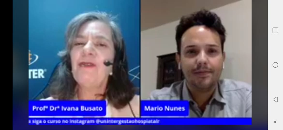 Para falar sobre a atuação profissional dentro da área, a coordenadora do curso de Gestão Hospitalar da Uninter, professora Ivana Busato, convidou o gestor hospitalar Mario Gilberto Jesus Nunes para um bate-papo com os alunos, no dia 31.mar.2021.