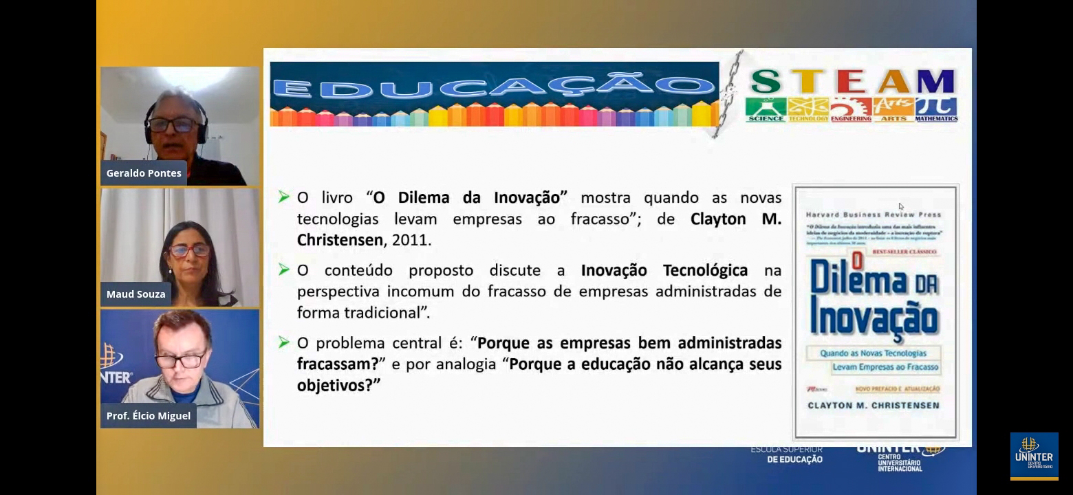 A educação Steam foi o tema do programa Exatamente, transmitido no canal de YouTube da Escola Superior de Educação da Uninter, no dia 19 de outubro. Com mediação de Élcio Miguel, professor da área de exatas, e a participação de Maud Souza e Geraldo Pontes, pesquisadores na área da Steam, o programa abordou a história da educação interdisciplinar e o impacto das tecnologias na sociedade atual.