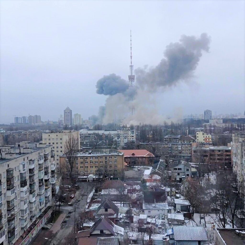 Bombardeio russo a antenas de telecomunicações em Kiev, capital da Ucrânia.
