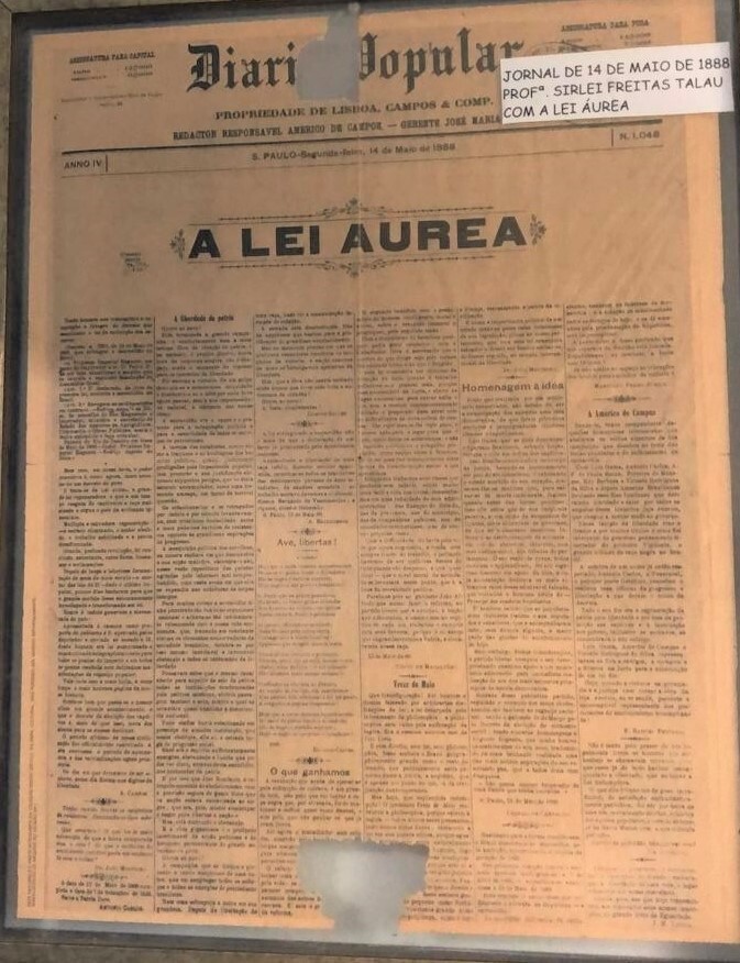 Uma das raridades deste acervo é o jornal Dário Popular de 14 de maio de 1888 com a publicação da Lei Áurea, de nº 3.353. Sancionada no dia 13 de maio daquele ano pela Princesa Isabel, a lei aboliu a escravidão no país. Sirlei ganhou o documento de um amigo.