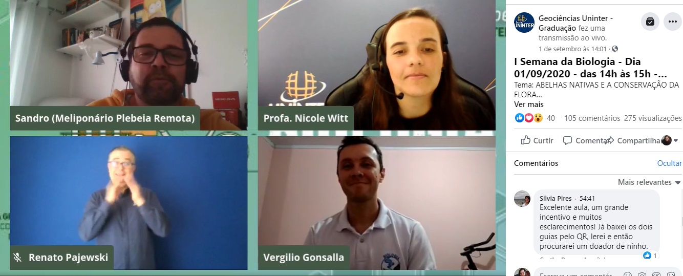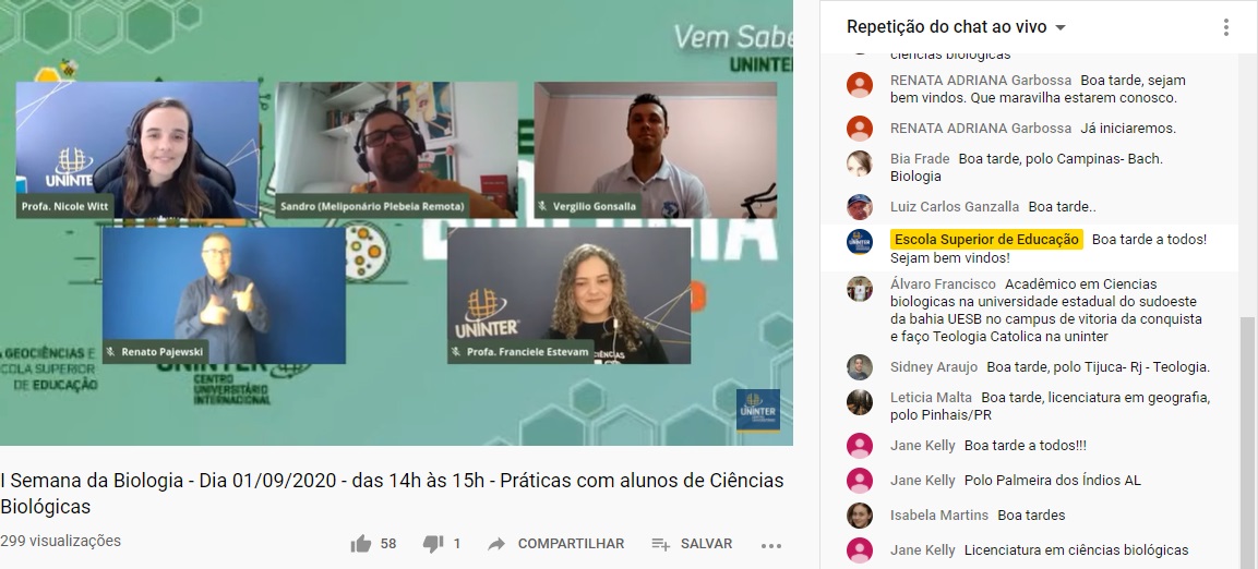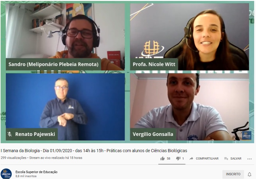 O bate-papo completo de Sandro e Vergílio, com mediação das professoras Nicole Witt e Franciele Estevam, da área de Geociências, está disponível através do Facebook e do canal do Youtube da Escola Superior de Educação. Siga a página para acompanhar toda a programação da I Semana de Biologia.