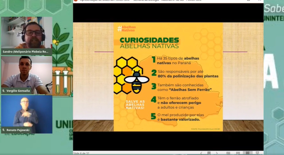“O fruto, quando bem polinizado, fica maior, mais saboroso e mais resistente a pragas. Sem contar que a grande proporção da sua alimentação é fruto de polinização. Nós sempre usamos aquela frase célebre do Albert Einstein que fala que ‘se as abelhas acabarem, a humanidade consegue sobreviver quatro anos’”, diz Sandro de Araújo, licenciando de Ciências Biológicas na Uninter no polo de Pinhais (PR) e criador de abelhas.