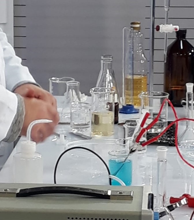Primeiramente, o professor Eduardo apresentou conceitos básicos de estequiometria aplicada à análise titulométrica de neutralização ácido-base. Ao analisar uma amostra de vinagre, provou que a concentração apresentada na embalagem dos produtos que comparamos no mercado pode ser testada e comprovada por meio dos conteúdos e cálculos aprendidos nas aulas de química analítica quantitativa, cujo conteúdo programático é um dos carros chefe da química e essencial para a formação do químico, que pretende atuar em um laboratório ou preparar aulas práticas para seus futuros alunos no ensino de química.