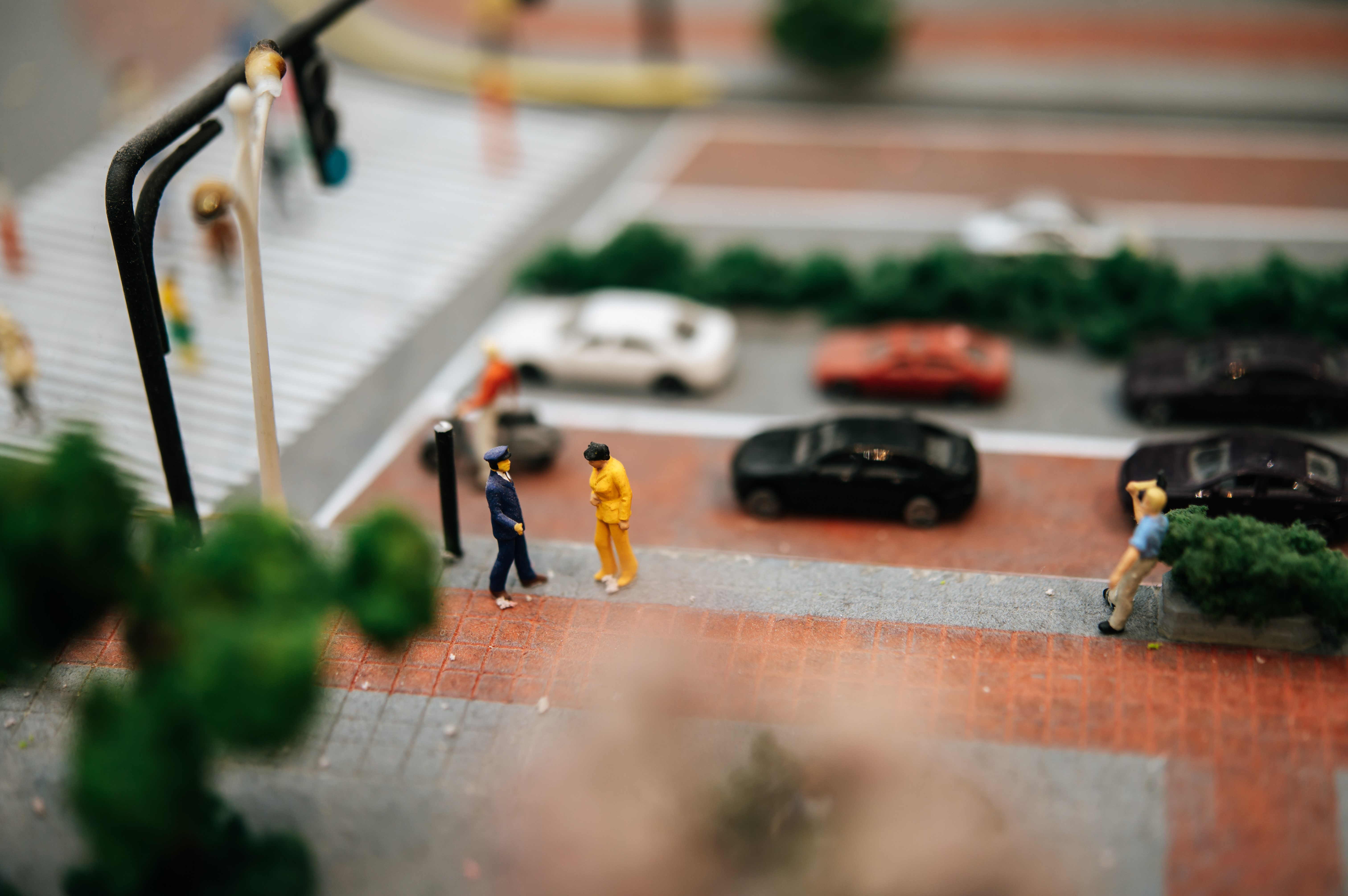 close up of small traffic police inspect motorists.