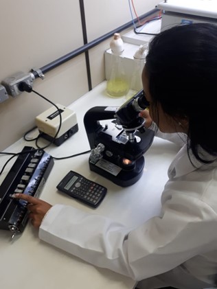 Samara relata que realiza todas as atividades programadas e que se sentiu bem segura ao utilizar o microscópio do estágio, por ter realizado suas atividades práticas com o seu LPI (Laboratório Prático Individual Gregor Mendel) do curso da Uninter. Ela conta que tem fascínio maior pelas algas.
