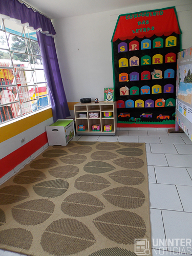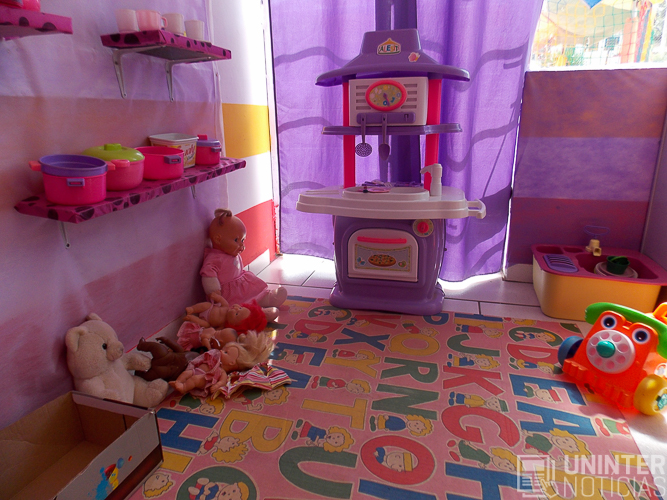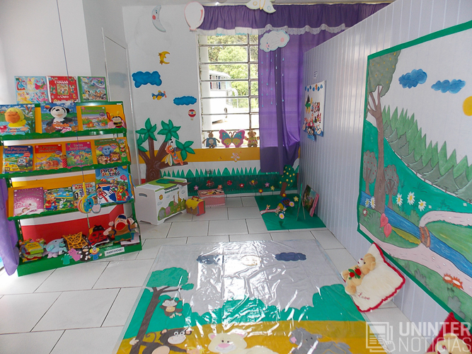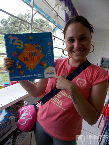As alunas contam que entre os materiais oferecidos para as crianças no CMEI, está o material didático da UNINTER, a Coleção Gira Mundo para a Educação Infantil. Voltado para crianças de dois a cinco anos, o projeto aborda temas sociais e estimula a prática da escrita e do desenho, além de conter narrativas em diferentes contextos para fácil compreensão da criança.