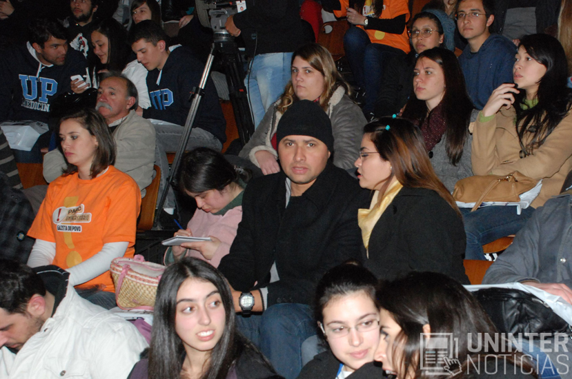 O aluno do curso de Jornalismo do Centro Universitário UNINTER, Ulisses Camargo, participou no último dia 14 de agosto da terceira edição do Papo Universitário — uma ação do jornal Gazeta do Povo – com o tema “Por que você protesta?”. O evento é realizado tradicionalmente no Teatro Paiol, onde profissionais, especialistas e estudantes universitários debatem assuntos em evidência no momento. Camargo atenta para a relevância dos temas abordados. Para ele é importante que o estudante aprenda a debater sobre a atualidade com profissionais de diversas áreas, e ainda, ressalta que o contato com outros acadêmicos da área de comunicação, faz toda a diferença. “Podemos ter uma visão clara da nossa sociedade e discutindo formamos nossas ideias”, afirma.