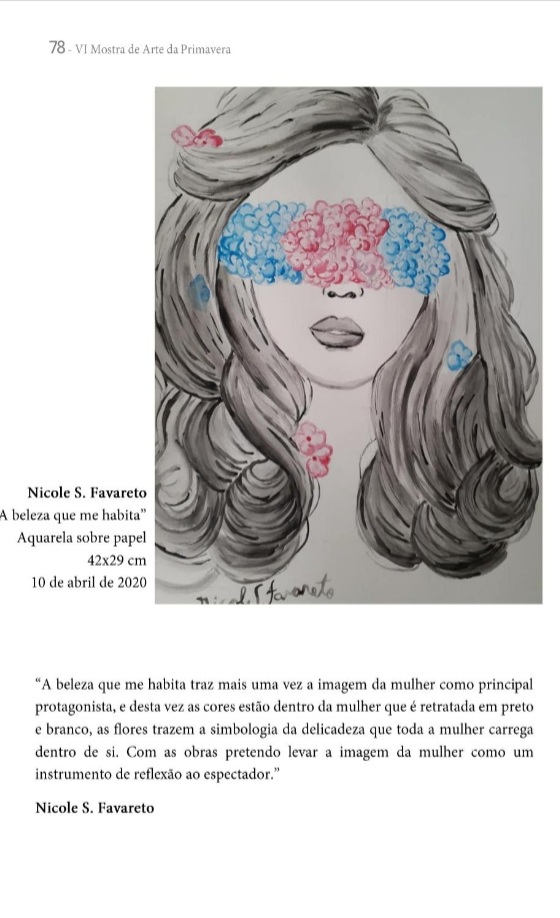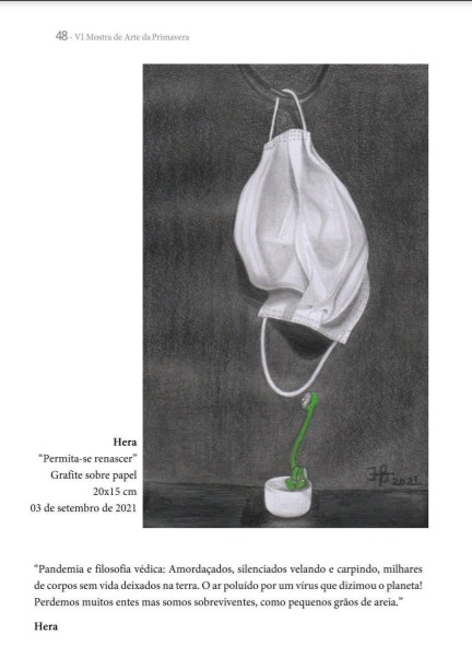 “A beleza que me habita”, de Nicole Favaretto, apresenta a mulher como protagonista, propondo uma reflexão ao público sobre a imagem feminina.  E o grafite sobre papel intitulado “Permita-se renascer” apresenta a visão de Hera de Deus Brigagão sobre a pandemia de covid-19 e o luto por aqueles que se foram.