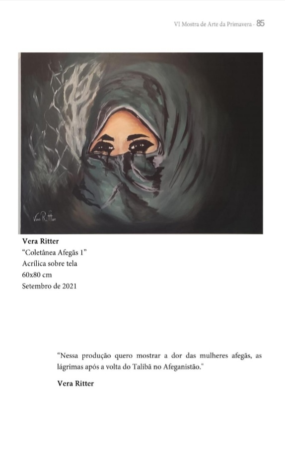 Em “Coletânea afegãs”, o sentimento de dor é expresso através da imagem feminina. Vera Ritter reflete sobre o medo pela volta do talibã ao poder no Afeganistão e a luta das mulheres afegãs por liberdade.
