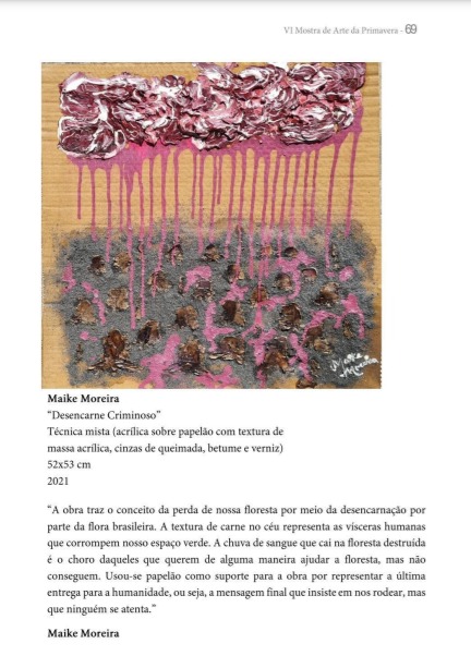 Outro tema abordado foi a preservação da flora e da fauna. Maike Moreira traz em “Desencarne criminoso” a tristeza e revolta quanto à perda de nossa natureza. Conforme descreve, “a chuva de sangue que cai na floresta destruída é o choro daqueles que querem de alguma maneira ajudar a floresta, mas não conseguem”.