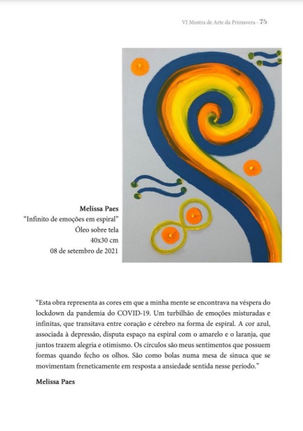No trabalho de Melissa Paes, as telas refletem o turbilhão de emoções vividos em época de pandemia, explorando os sentimentos em um “infinito de emoções em espiral”.