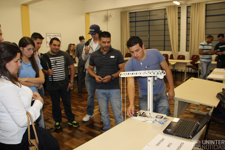 Alunos do Campus Carlos Gomes produziram no dia 17 de novembro a II Feira de Automação dos cursos de Gestão da Produção Industrial (GPI) e Logística. Ao todo, seis grupos de estudantes do Centro Universitário Internacional UNINTER apresentaram os projetos desenvolvidos para a disciplina Automação da Produção.