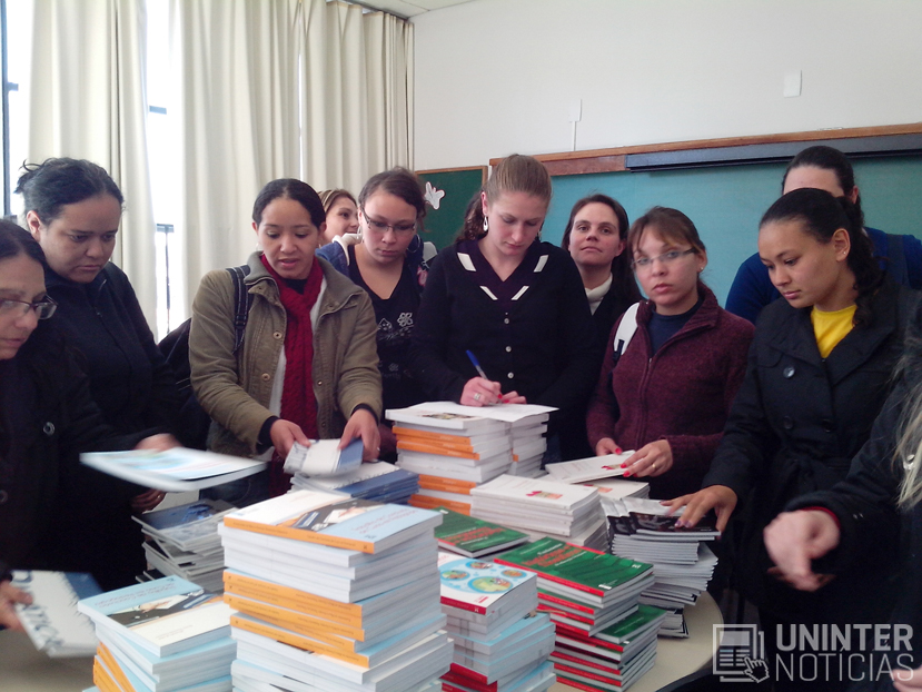Os alunos do curso de Pedagogia -modalidade presencial- do Centro Universitário UNINTER receberam, na primeira semana de aula, os livros da Editora IBPEX que correspondem às disciplinas do curso. Segundo a coordenadora do curso de Pedagogia, professora Claudia Mara, a distribuição deste material tem o objetivo de complementar a formação acadêmica do aluno, além de auxiliar na constituição da biblioteca particular de cada um. “O acesso às diferentes fontes é necessário para a formação profissional e, esta ação, estimula a leitura e a busca pelo conhecimento, atitudes fundamentais no processo de formação do pedagogo e do professor”, comenta Claudia.