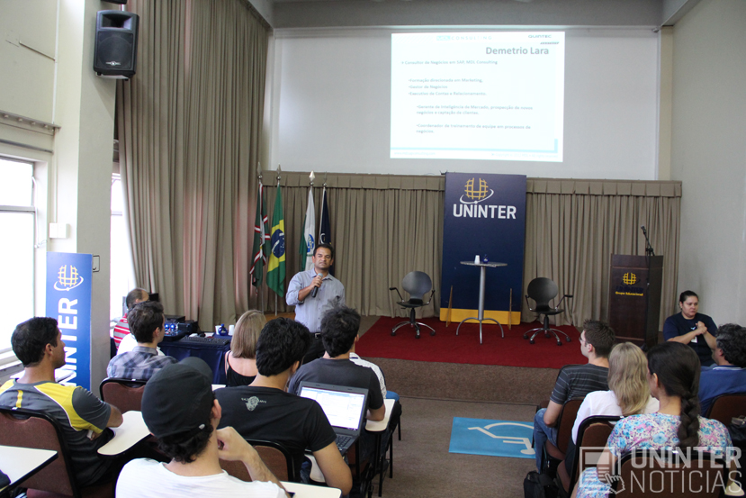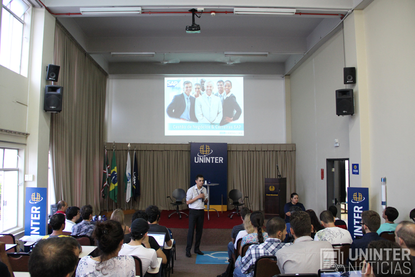 Os alunos de Análise e Desenvolvimento de Sistemas, Processos Gerenciais e Sistemas para Internet do Centro Universitário UNINTER, participaram, no dia 13 de fevereiro, da palestra Gestão Estratégica de Negócios e Carreiras em SAP, no Campus Tiradentes, em Curitiba.