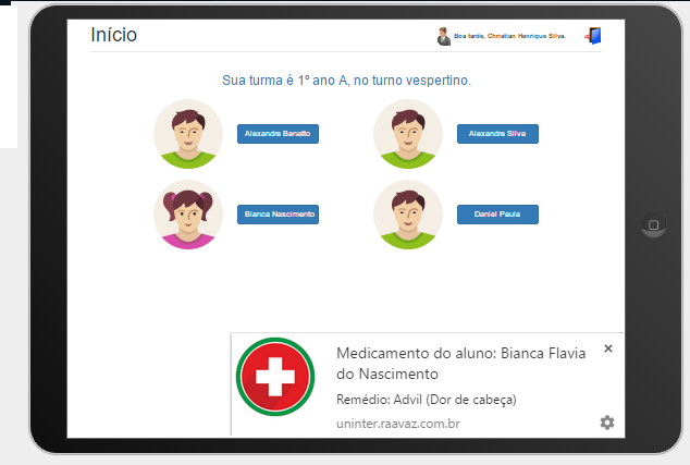 O Escola Infantil do ABC é um aplicativo de navegador, como Chrome, Mozila ou Explorer, que controla horários e atividades de cada aluno registrado. “Ele relaciona os status para que a professora saiba, por exemplo, quem já foi medicado, os horários das atividades da turma e assim por diante. O recurso também terá o e-mail dos pais para que eles fiquem sabendo das atividades que os filhos desempenham na escola”, explica Santos.